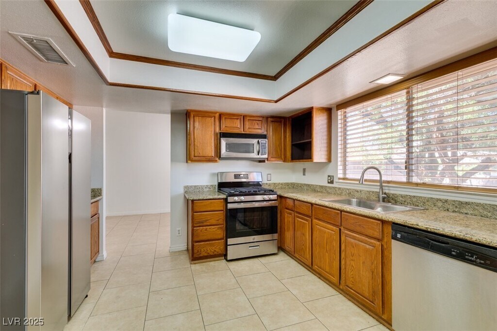 Great central location with a sunken living room, neutral paint, upgraded kitchen with granite counters, stainless steel appliances, granite bathrooms, tile floors downstairs, wood burning fireplace, new luxury vinyl plank flooring, and a brand new fridge. Nearby are schools including R. Guild Gray Elementary, Kenny C. Guinn Middle, and Ed W. Clark High. Daily errands are easy with Albertsons, Walmart, and Sprouts close by, while dining options range from Outback Steakhouse and Paymon’s Fresh Kitchen to local Mediterranean spots. Houses of worship are also nearby. Entertainment and shopping are minutes away, and the location offers convenient access to Rainbow, Tropicana, and Sahara for commuting across the valley.