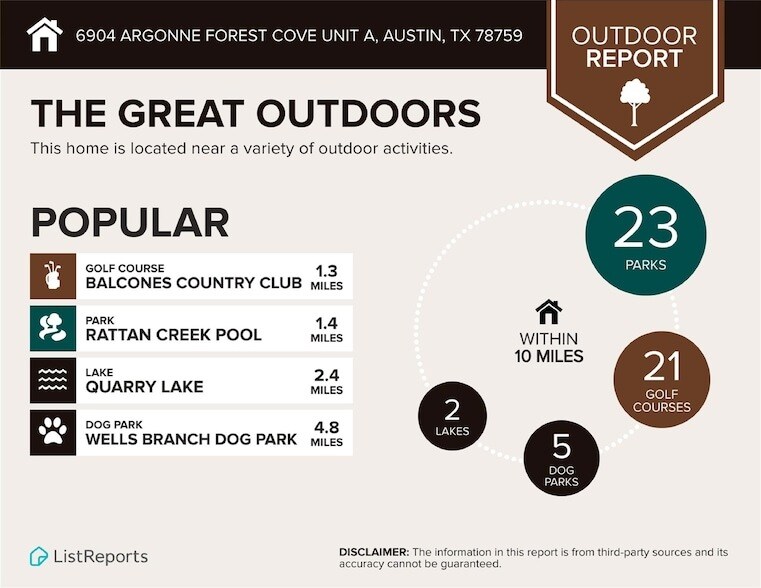 6904 Argonne Forest Cove tiene 5 parques en un radio de 9.8 millas, incluyendo Bull Creek Green Belt, Mount Bonnell, Hancock Golf Course, Lions Golf Course, y Lake Travis.