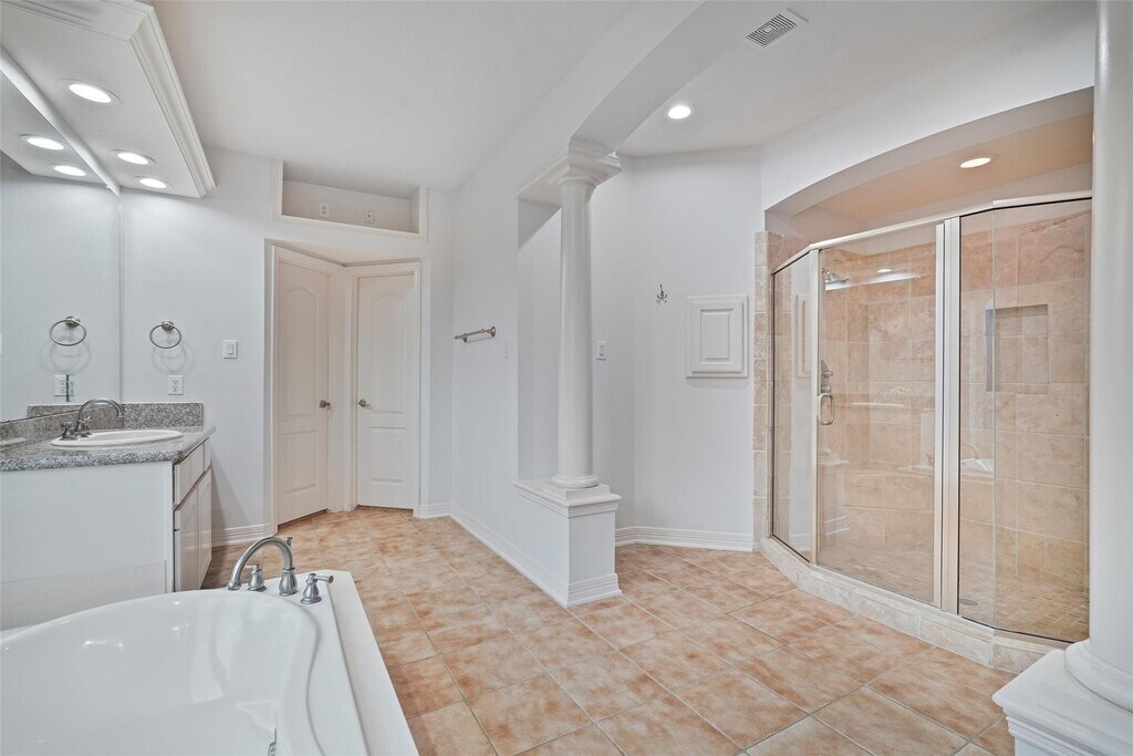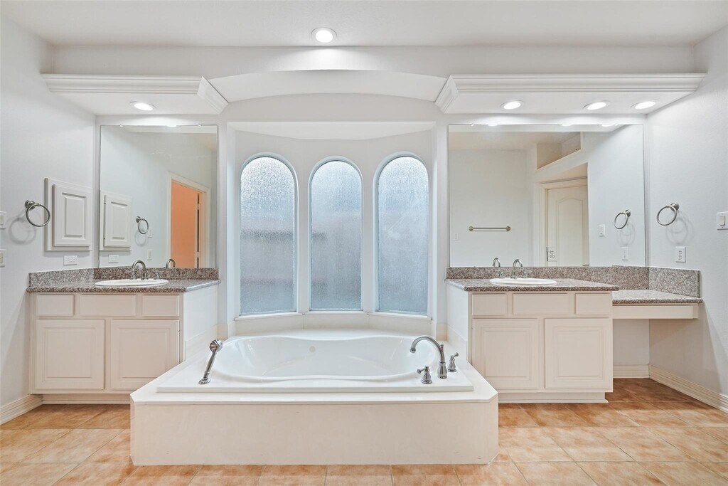 Mojgan RezaieWaterfront living in Grand Lakes! Set on a serene lake with a walking trail, this home captures sweeping water views from the family room, breakfast area, and luxe first-floor primary suite. An open layout features tile flooring, arched openings, a fireplace, and an island kitchen with abundant cabinetry and a breakfast bar. Work and play spaces abound with a private study, plus an upstairs game room and adjacent flex/office with built-ins. Two secondary bedrooms share a Jack-and-Jill bath; a third is served by a nearby full bath. The primary retreat offers a curved wall of windows and a spa-style bath with dual vanities, soaking tub, glass shower, and an oversized custom closet. Outside: a large covered patio and sparkling pool & spa with removable safety fence, all framed by an iron fence to the lake. Major updates: roof (2023) and AC (2022). Never flooded. Enjoy Grand Lakes parks, lakes, trails and resort-style pools. Schedule your private tour today!