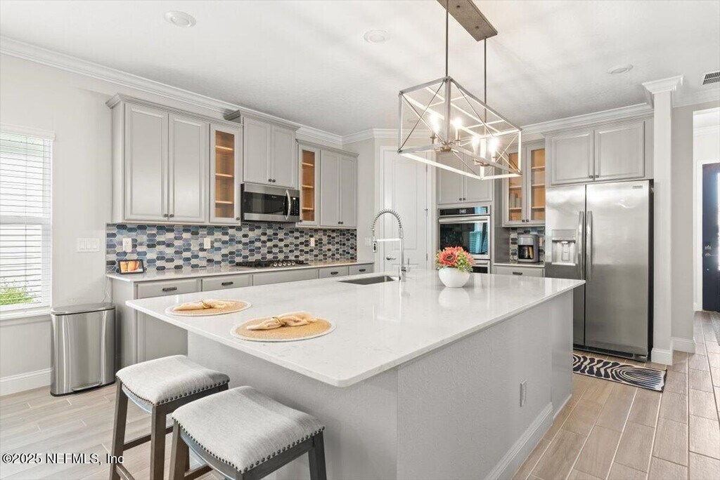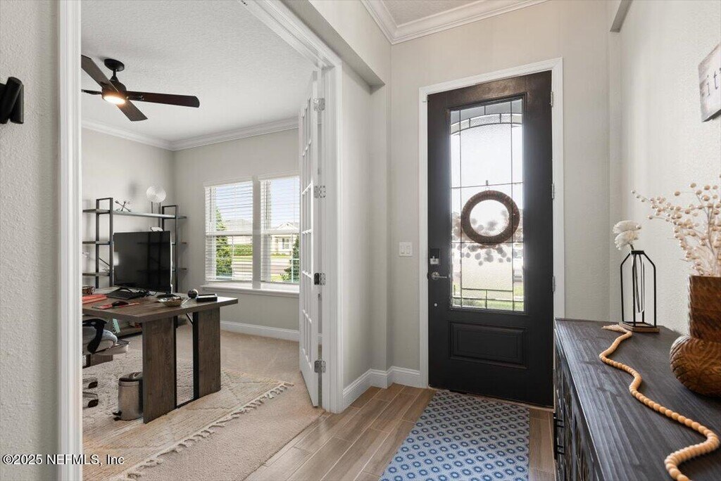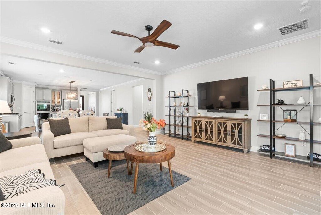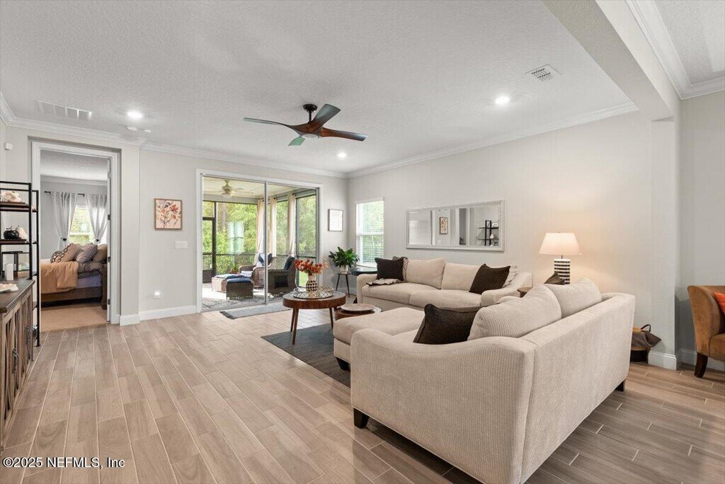 Meshell PerryWelcome to 710 Stillwater Blvd, where luxury meets low-maintenance living in the heart of Stillwater, St. Johns' premier 55+ active adult community. This Sierra floor plan boasts 4 bedrooms, a private study, 2.5 baths, and a 2-car garage, offering plenty of space for comfort, hobbies, and guests. Better than new, this home is loaded with thoughtful upgrades, including ceramic wood-look tile in all wet areas, extended into the family room, dining area, and hallways for a seamless and stylish look. Crown molding adds a refined finish throughout, and a tankless gas water heater provides energy-efficient hot water on demand.Living in Stillwater means embracing an active, resort-style lifestyle. Enjoy exclusive access to a championship golf course, resort-style clubhouse with a restaurant and bar, a state-of-the-art fitness center with aerobics studio, plus pickleball and tennis courts, a sparkling pool, and picnic areas for outdoor gatherings.