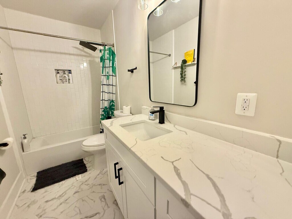 Welcome to 755 Columbia Rd NW #1 – a stunning, newly built luxury condominium just minutes from the heart of Columbia Heights. Spanning over 1,417 square feet, this beautifully designed residence offers an open-concept layout with soaring ceilings, large windows, and premium finishes throughout. The sleek two-tone kitchen features rich brown cabinetry, white quartz countertops, and high-end stainless steel appliances—perfectly suited for both everyday living and entertaining, with seating at the breakfast bar and space for a full dining area. The expansive primary bedroom comfortably fits a king-size bed and includes a spacious walk-in closet, while the second bedroom/den offers flexible use as a home office, fitness room, or library. The spa-inspired primary bathroom is a true retreat, showcasing double vanities and an oversized rain shower. A separate laundry/mudroom adds a rare and convenient touch not typically found in new DC construction. Situated next to Bruce Monroe Community Park & Garden and just a short walk to Metro, 14th Street, and U Street, this home places you in the center of DC's most vibrant dining, shopping, and entertainment options. Parking is available for purchase on a first-come, first-served basis. Experience the perfect combination of space, style, and location—don't miss your chance to call this exceptional condo home. Contact us to schedule a showing.