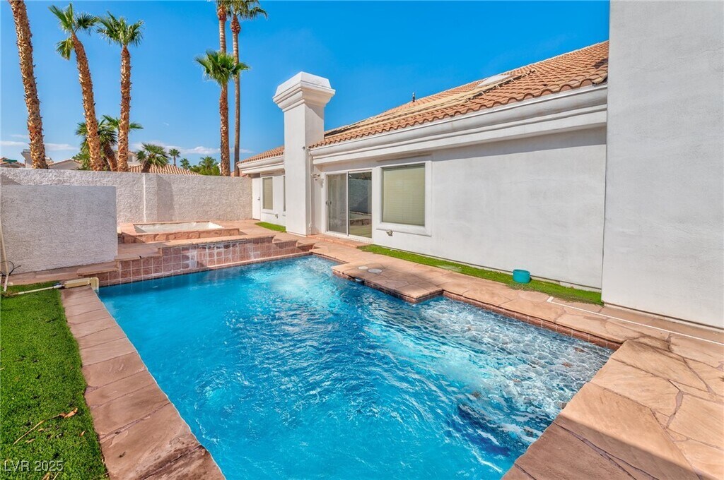 Está localizado en el barrio Desert Shores, 8129 Pacific Cove Dr en el código postal 89128 de Las Vegas, NV.