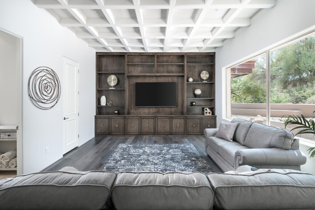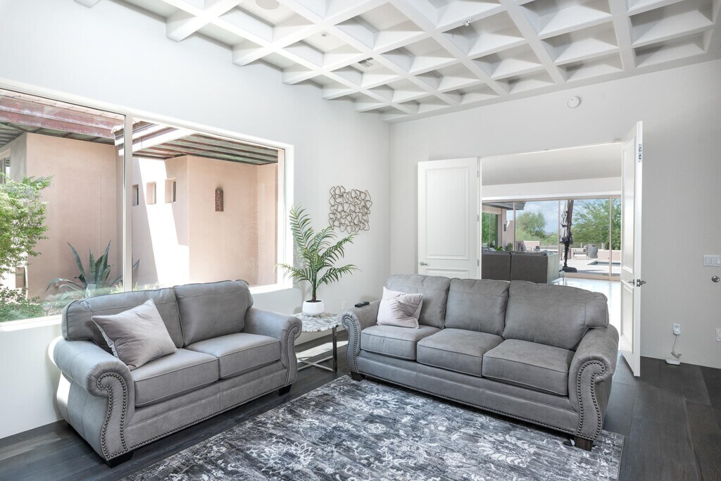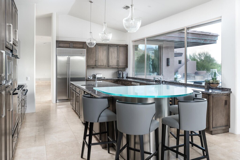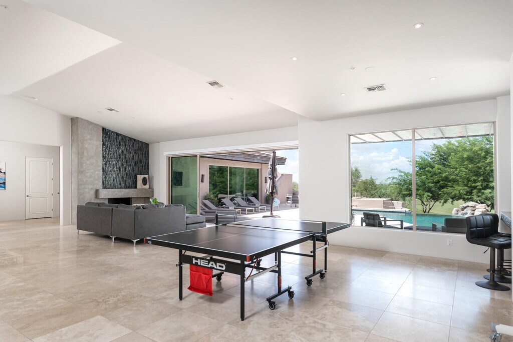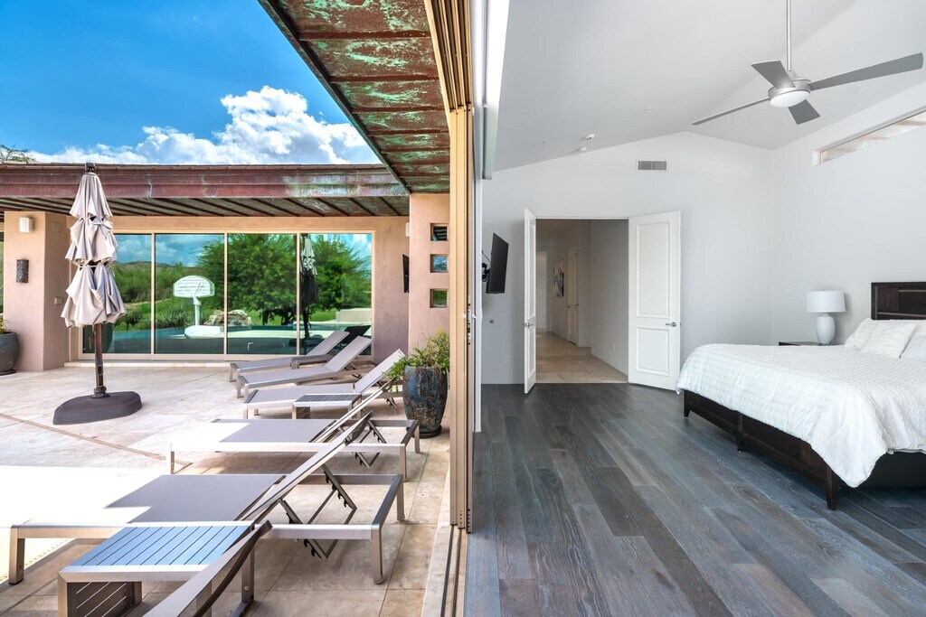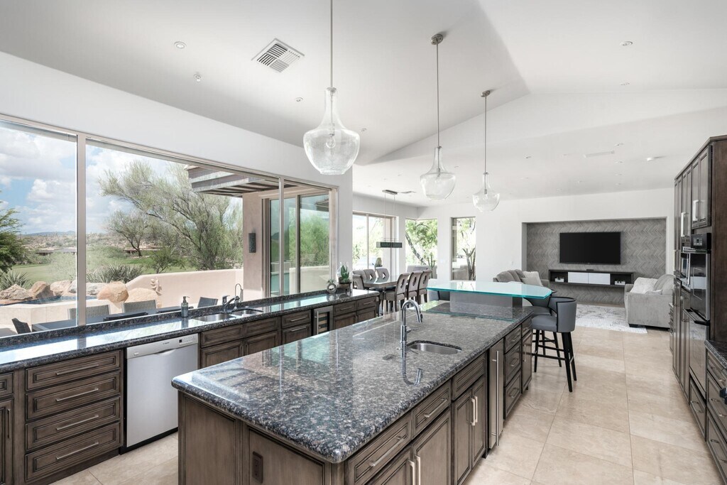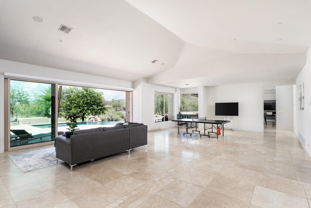 Los exquisitos hogar contemporáneo en Renegade's 15th green. Apartments recientemente remodelados con cuidado meticuloso. Ventanales de piso a techo ofrece espectaculares campos de golf y vista a las montañas. Amplio espacio para disfrutar de Arizona aire libre con una piscina sin límites, parrillas integradas, brasero, vista terraza y un amplio patio estilo travertino. En el interior de cada habitación es amplia y bien iluminada de agregar al ambiente elegante. La cocina fluye hacia la gran sala, lo que lo convierte en un gran espacio de entretenimiento y de la vez acogedor suficiente para una noche en familia en. Disfruta de una vida estilo centro turístico en tu máxima expresión. Fabulosa Desert Mountain complejo con 7 campos de golf, restaurantes y homes club; tenis, spa y gimnasio; senderos para caminatas, los senderos, y de actividades sociales.