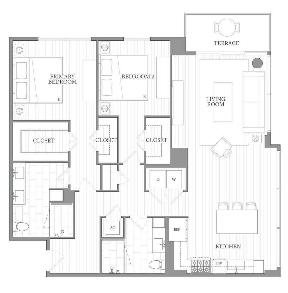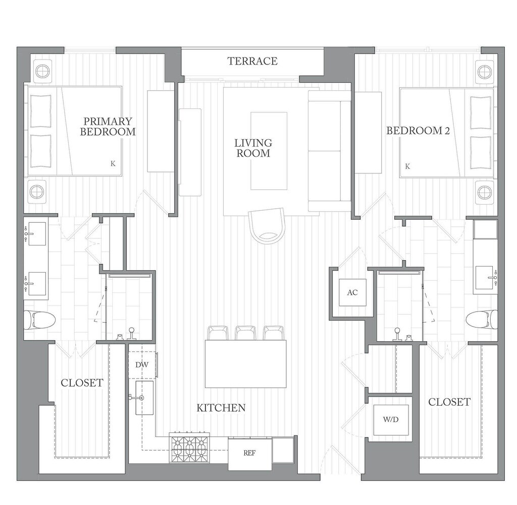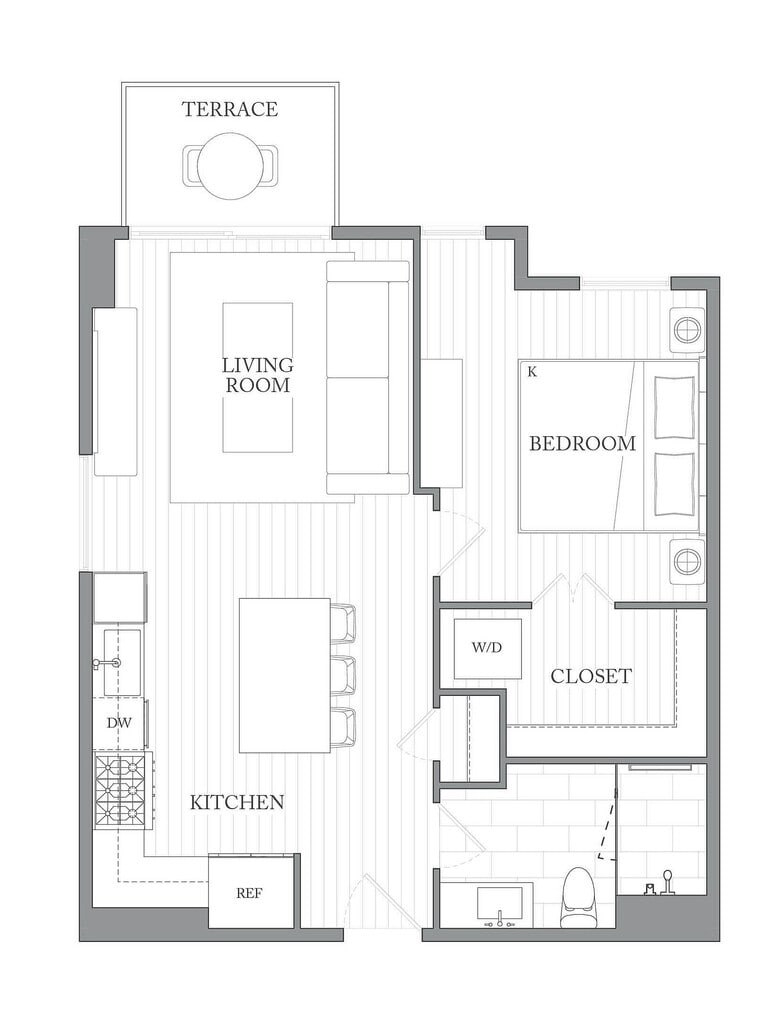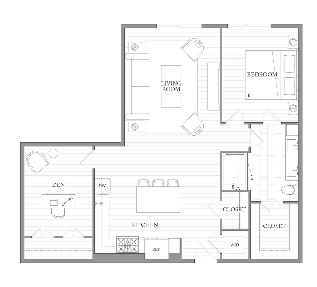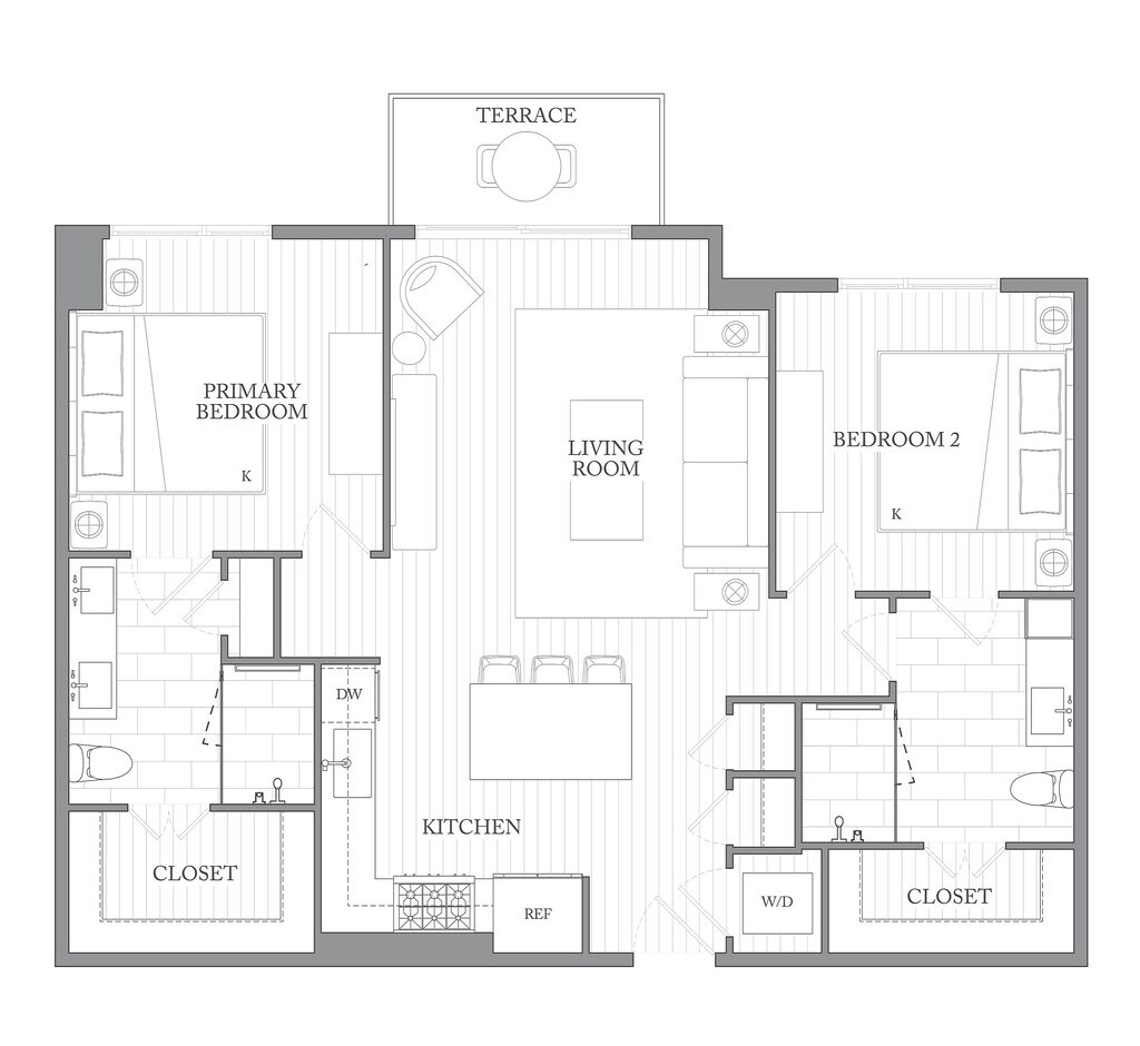 1 Dormitorio, 1 Baño, 867-876 pies²Disponible AhoraGalería del Modelo