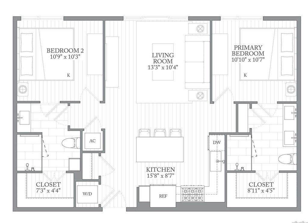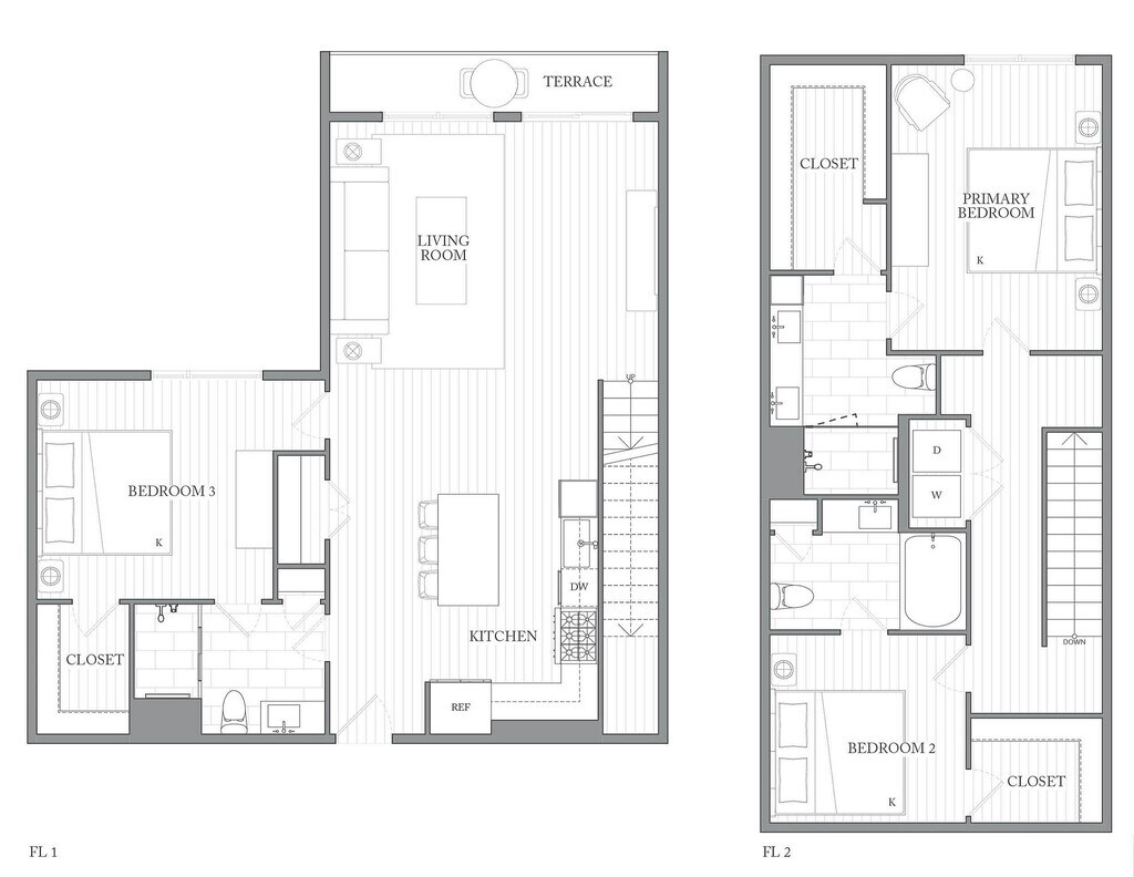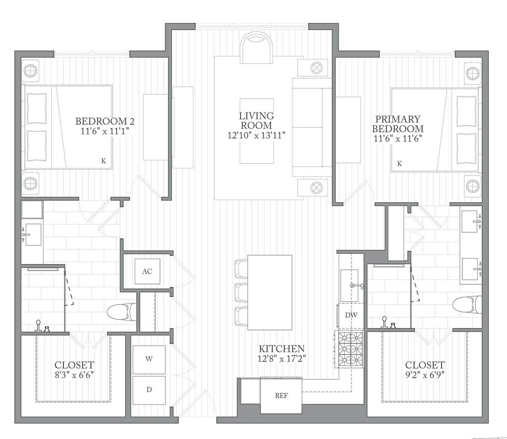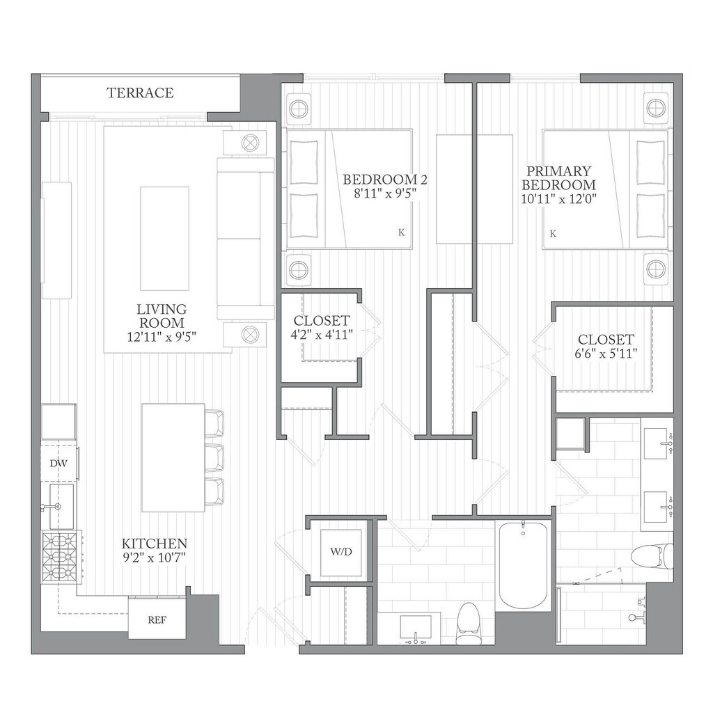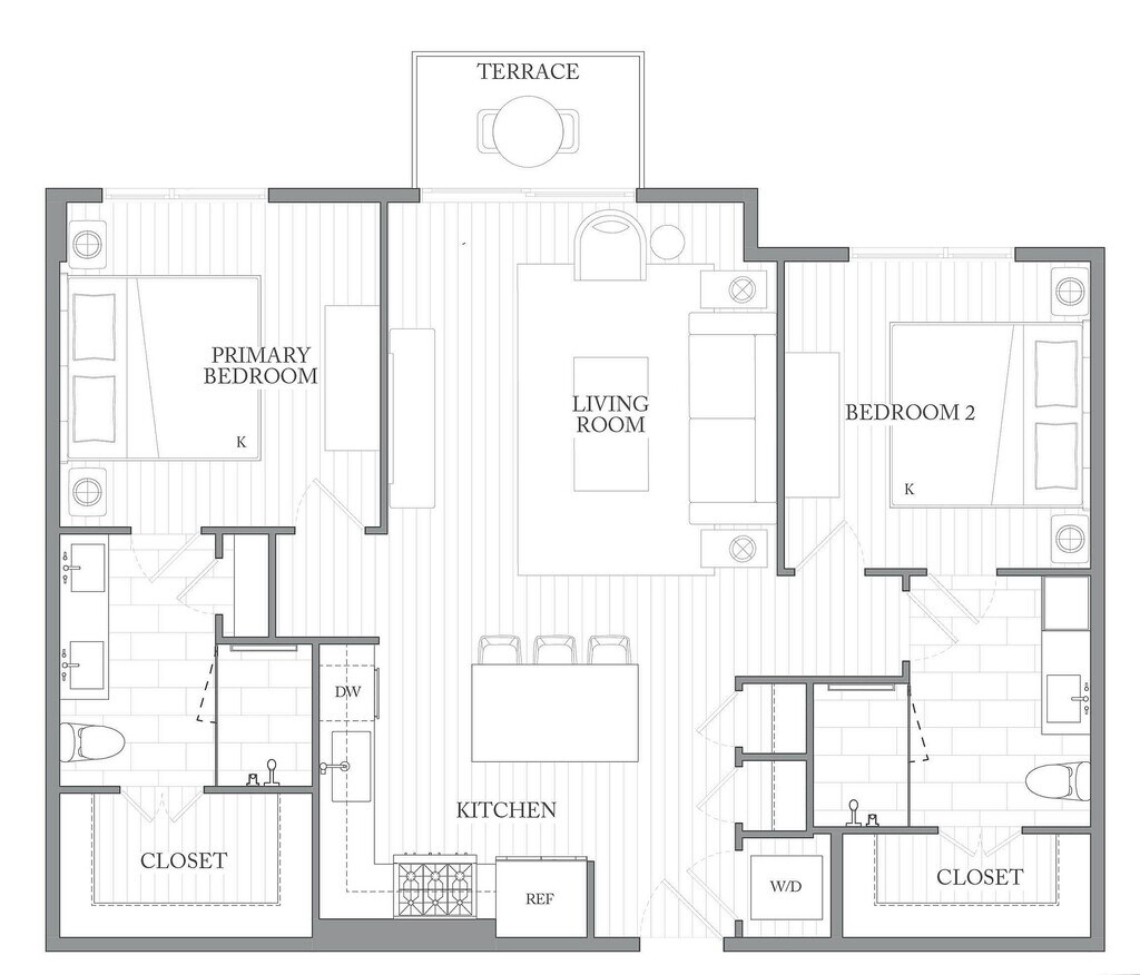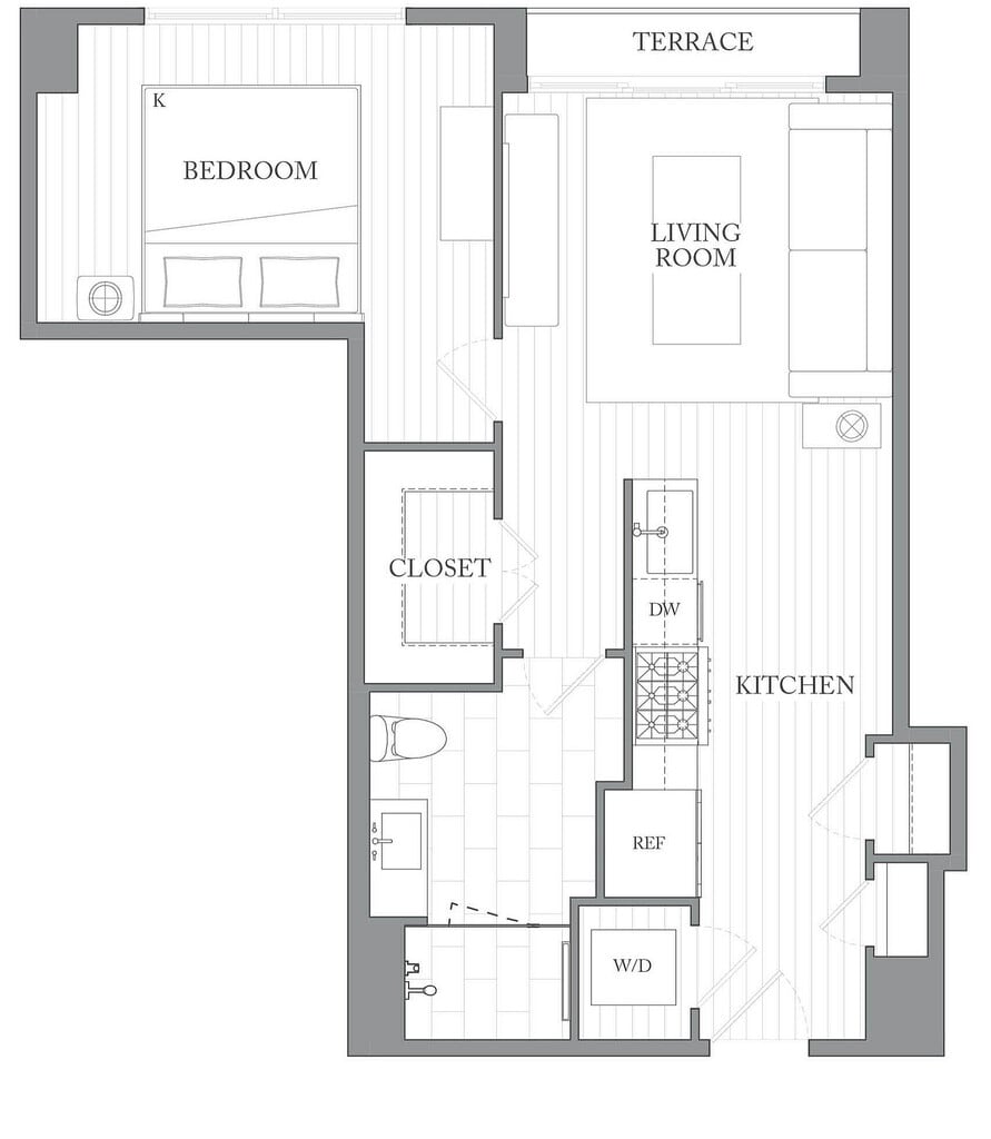 1 Dormitorio, 1 Baño, 867-876 pies²Disponible AhoraGalería del Modelo