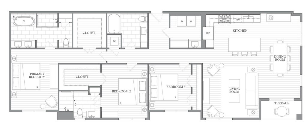 Modelo de apartamento: 1BDesde $2,3091 Dormitorio, 1 Baño, 767 sq ftDisponible Ahora![]()