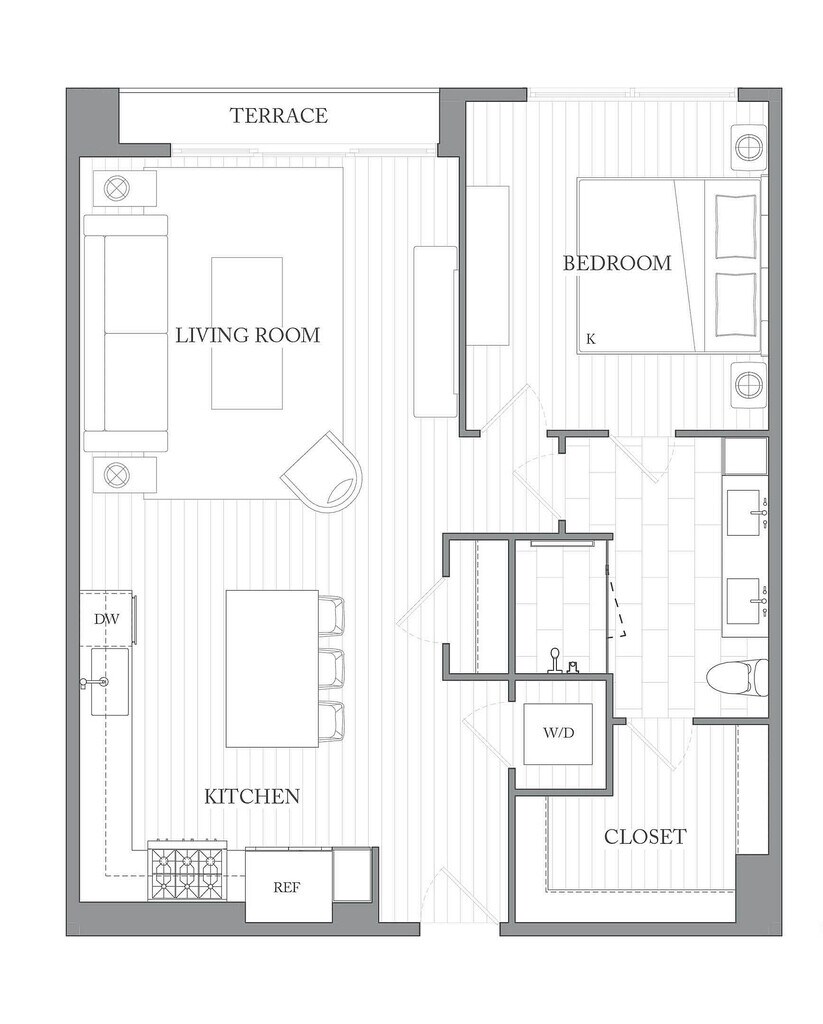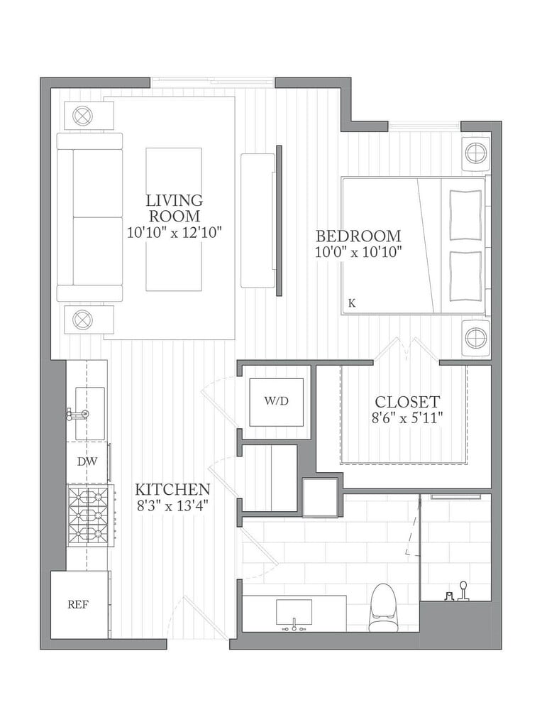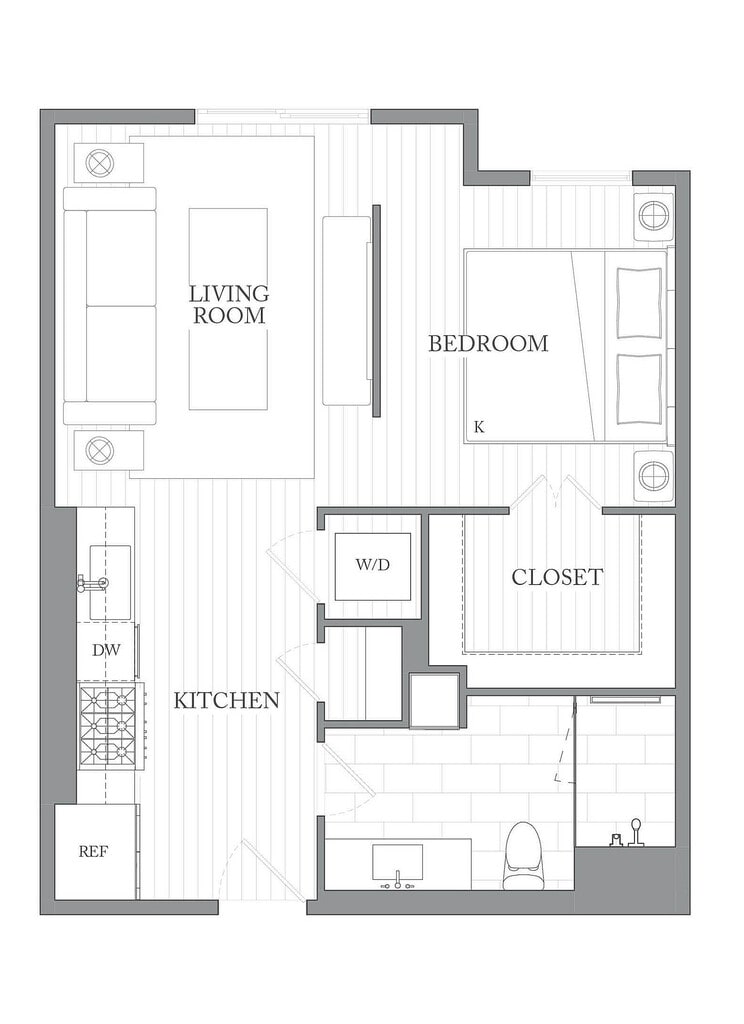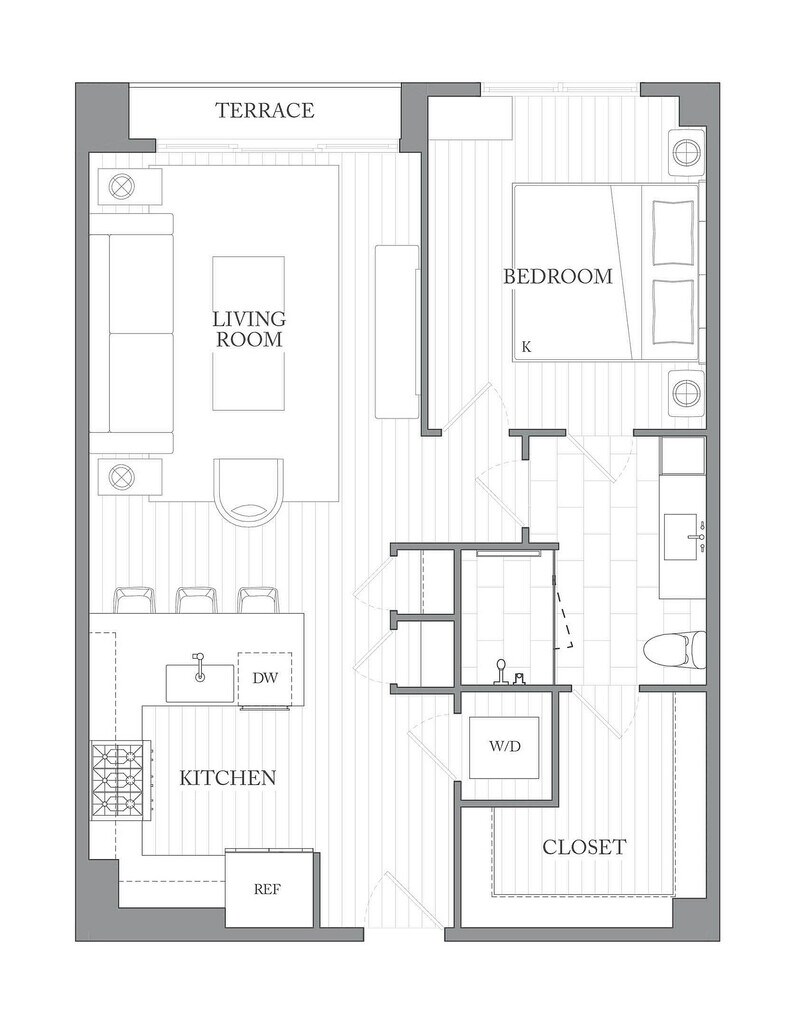 1 Dormitorio, 1 Baño, 653 pies²Disponible AhoraGalería del Modelo