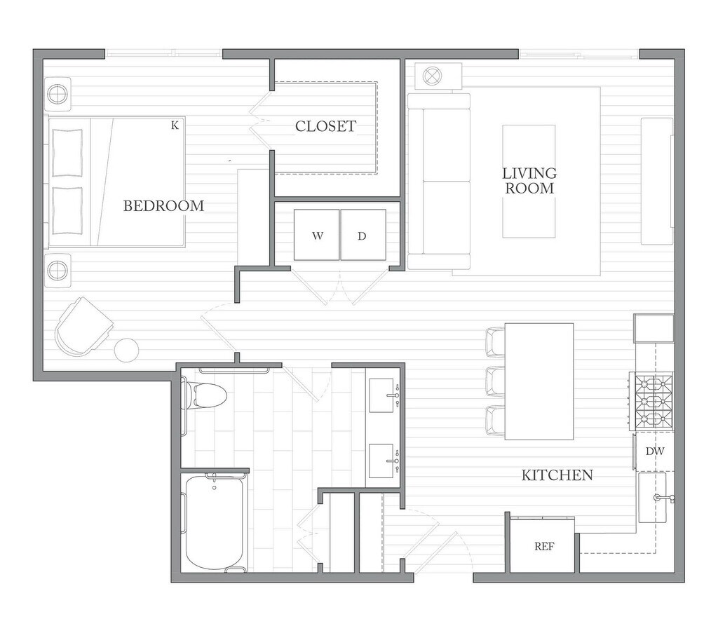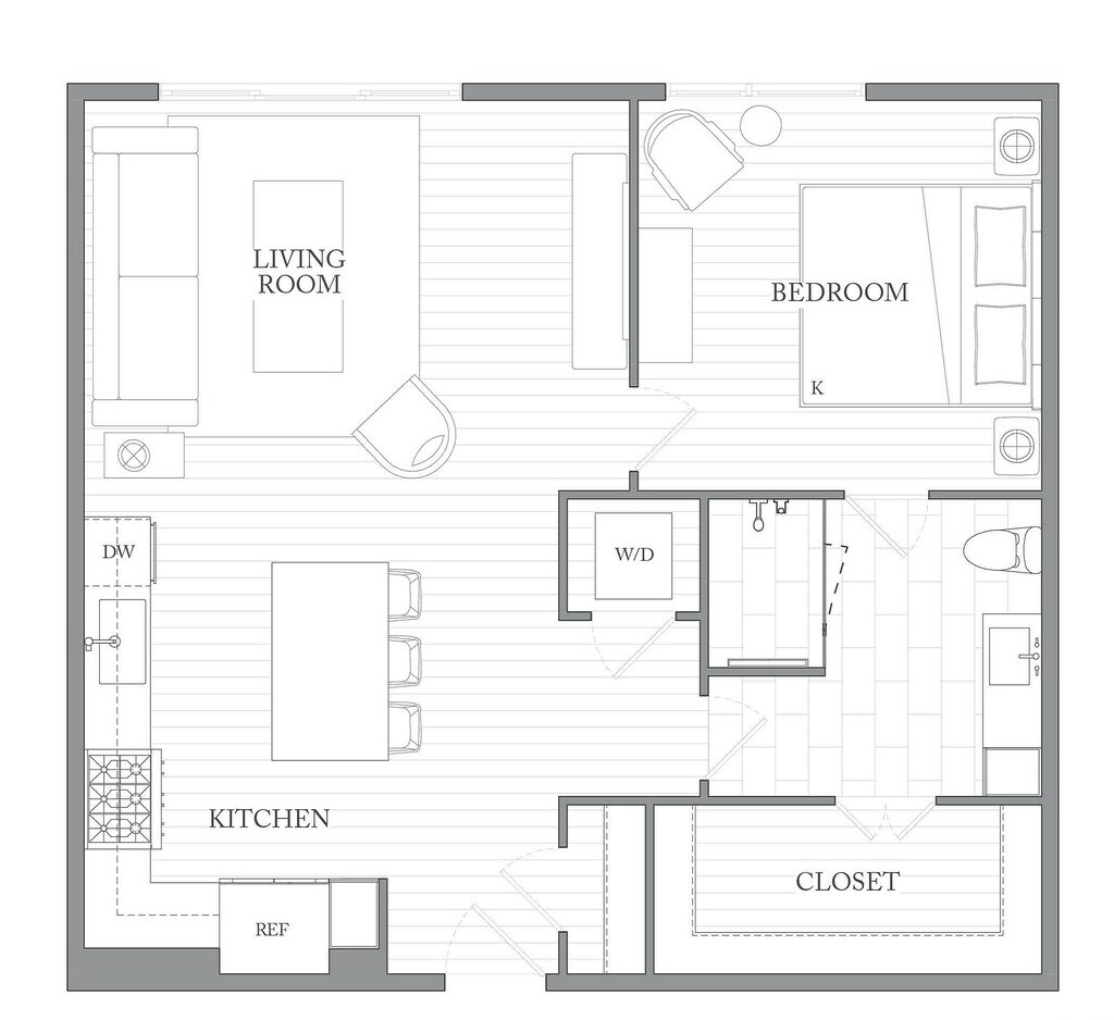1 Dormitorio, 1 Baño, 767 pies²Disponible AhoraGalería del Modelo
