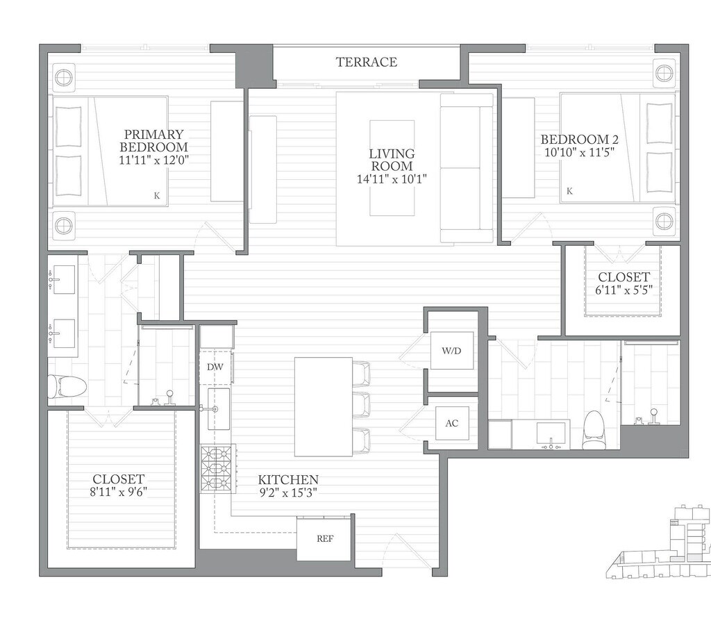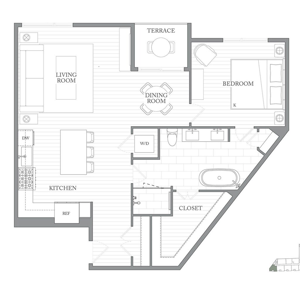 1 Dormitorio, 1 Baño, 1181 pies²Disponible AhoraGalería del Modelo