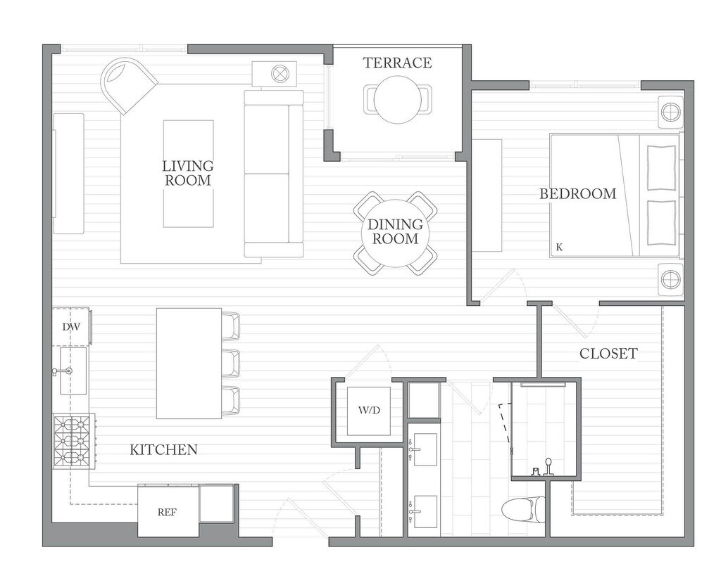 1 Dormitorio, 1 Baño, 1127 pies²Disponible AhoraGalería del Modelo
