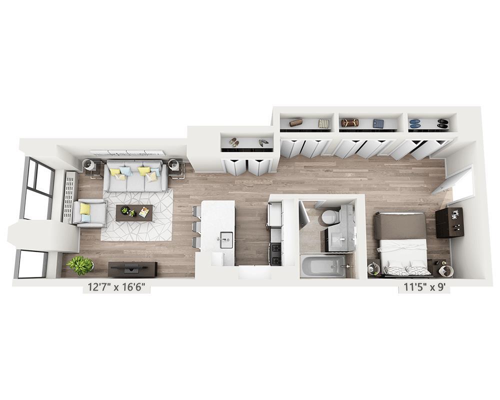 Estudio, 1 Baño, 550 pies²Precio Mensual TotalDisponible AhoraGalería del Modelo