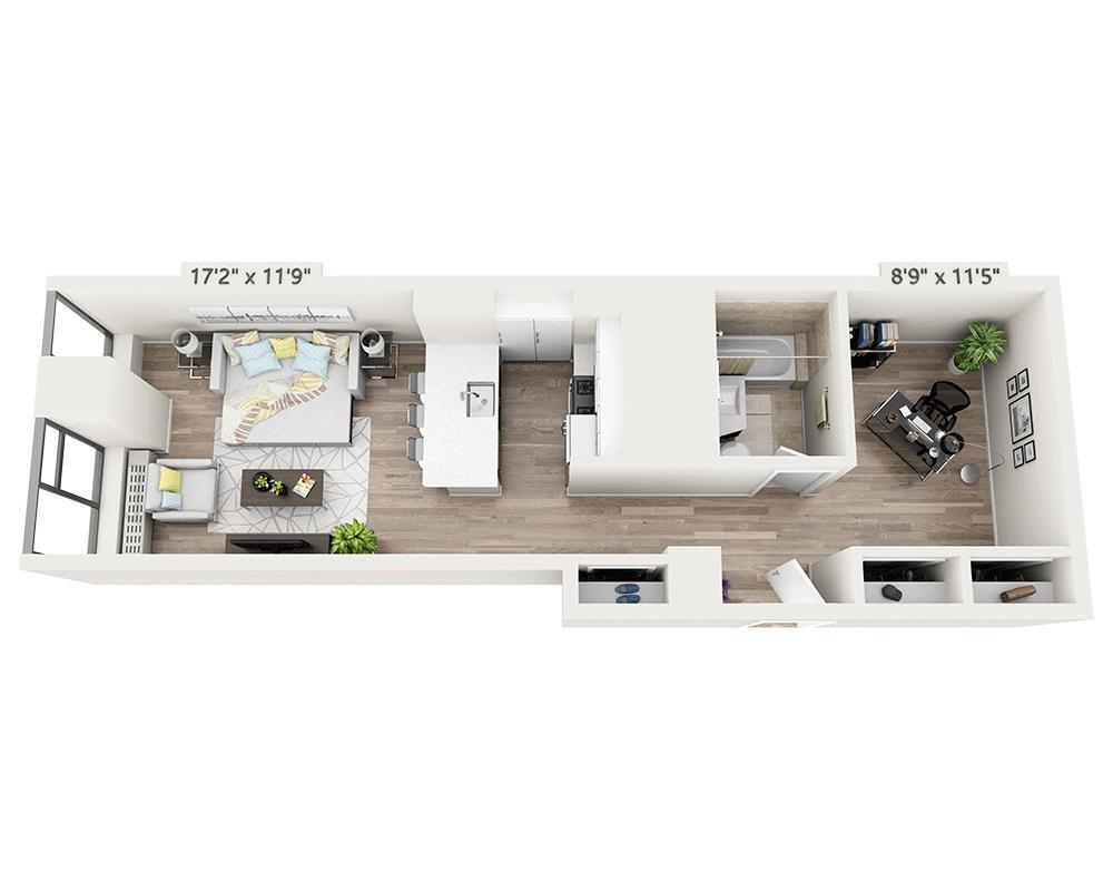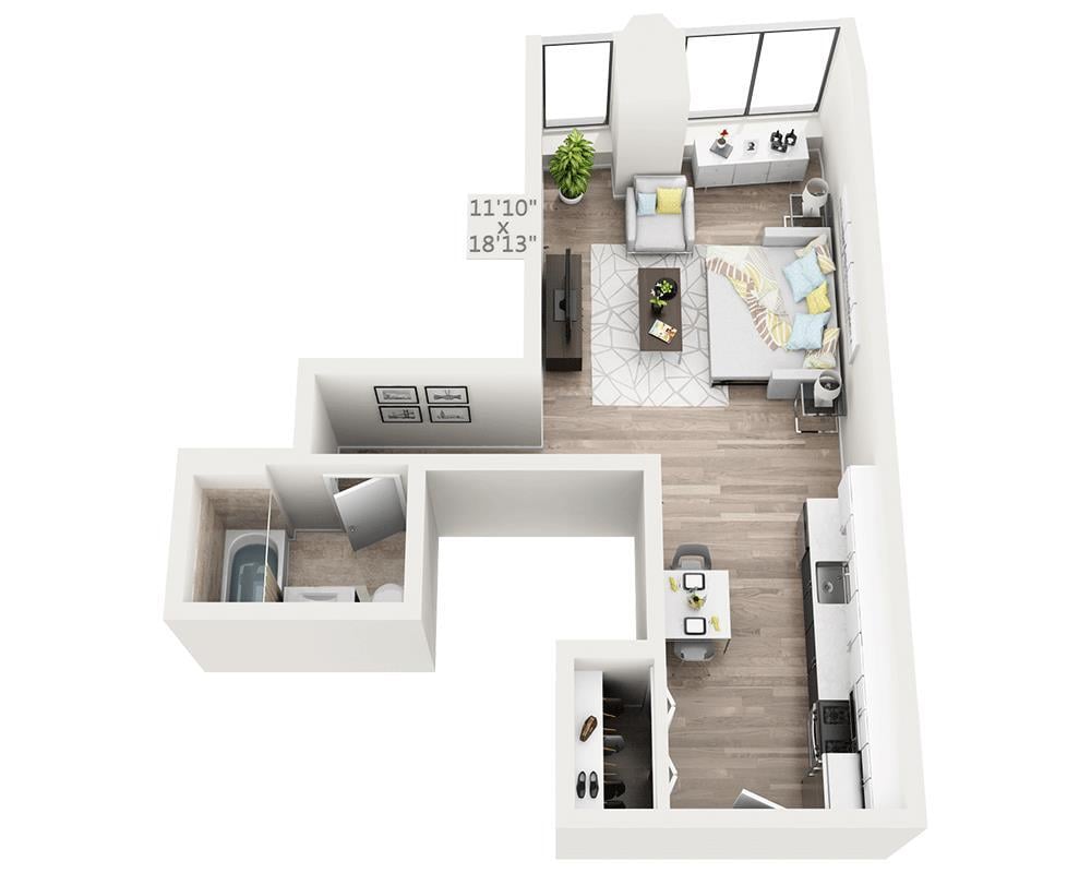 Studio w/Alcove T - Plano 1 Unidad de apartamento: 01-11TModelo de apartamento: Studio w/Alcove T$4,297Estudio, 1 Baño, 550 sq ftDisponible AhoraPlanosFotos![]()