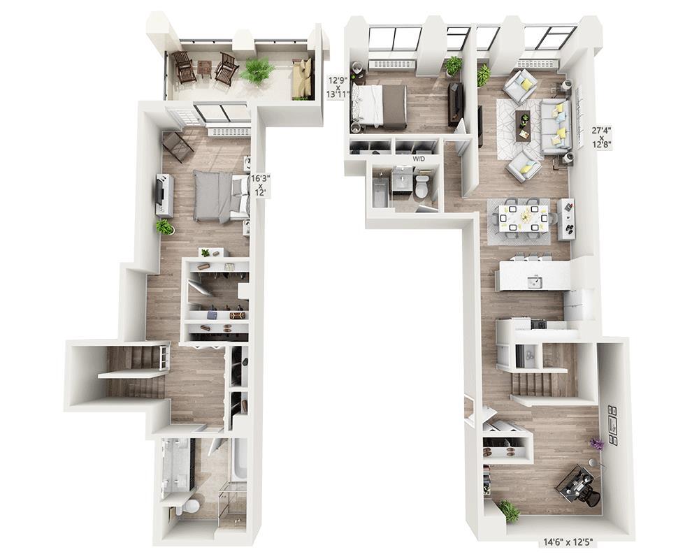 Unidad: 01-23T - Imagen 4 Los planos son representaciones artísticas. Todas las dimensiones son aproximadas. El producto y las especificaciones reales pueden variar en tamaño o detalle. No todas las características están disponibles en cada vivienda en alquiler. Por favor, consulta con un representante para obtener más detalles.