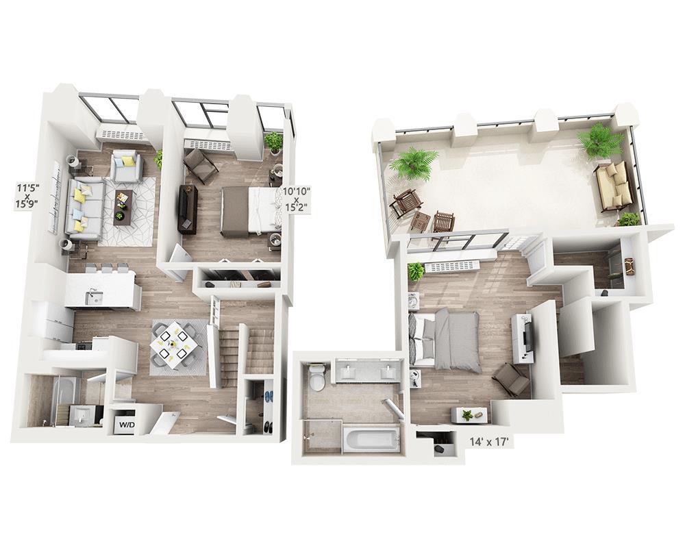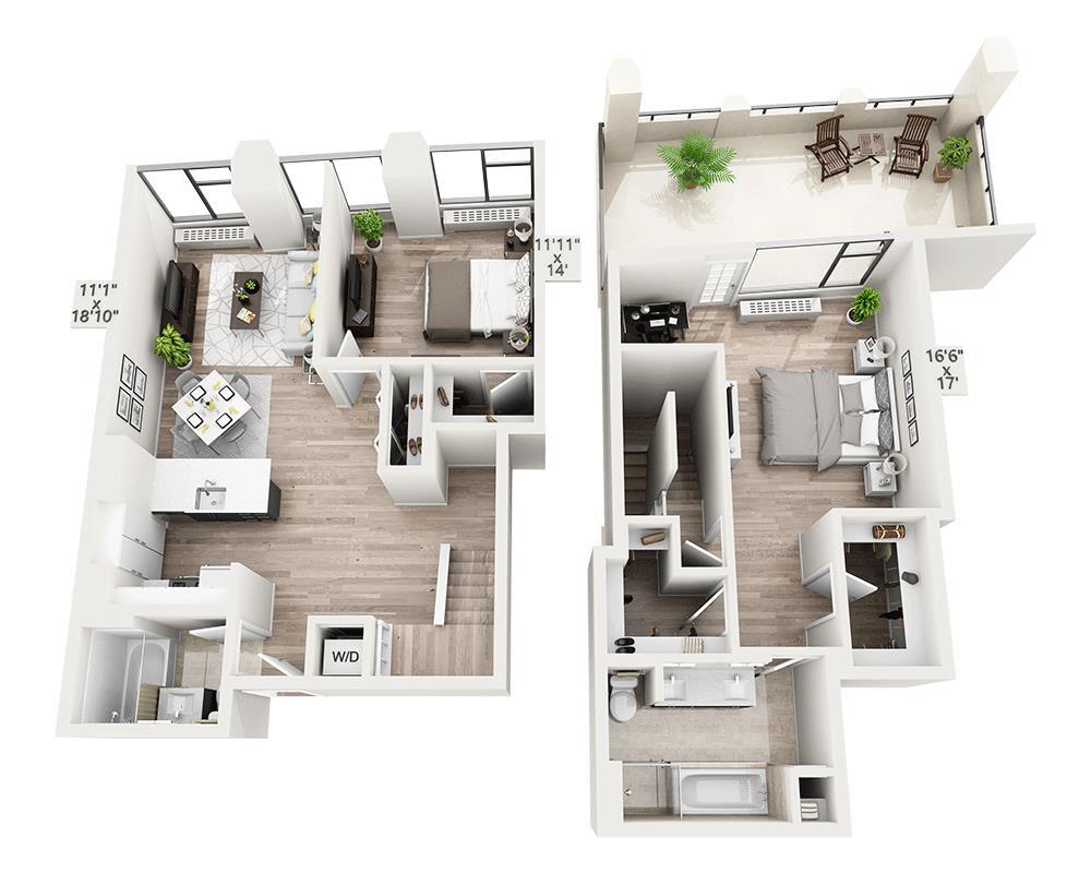 Unidad: 01-11T - Imagen 4 Los planos son representaciones artísticas. Todas las dimensiones son aproximadas. El producto y las especificaciones reales pueden variar en tamaño o detalle. No todas las características están disponibles en cada vivienda en alquiler. Por favor, consulta con un representante para obtener más detalles.