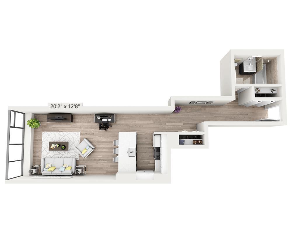 Unidad: 01-23T - Plano 5 Unidad de apartamento: 01-08TModelo de apartamento: Studio w/Alcove T$3,957Estudio, 1 Baño, 550 sq ftDisponible March 20, 2026PlanosFotos![]()