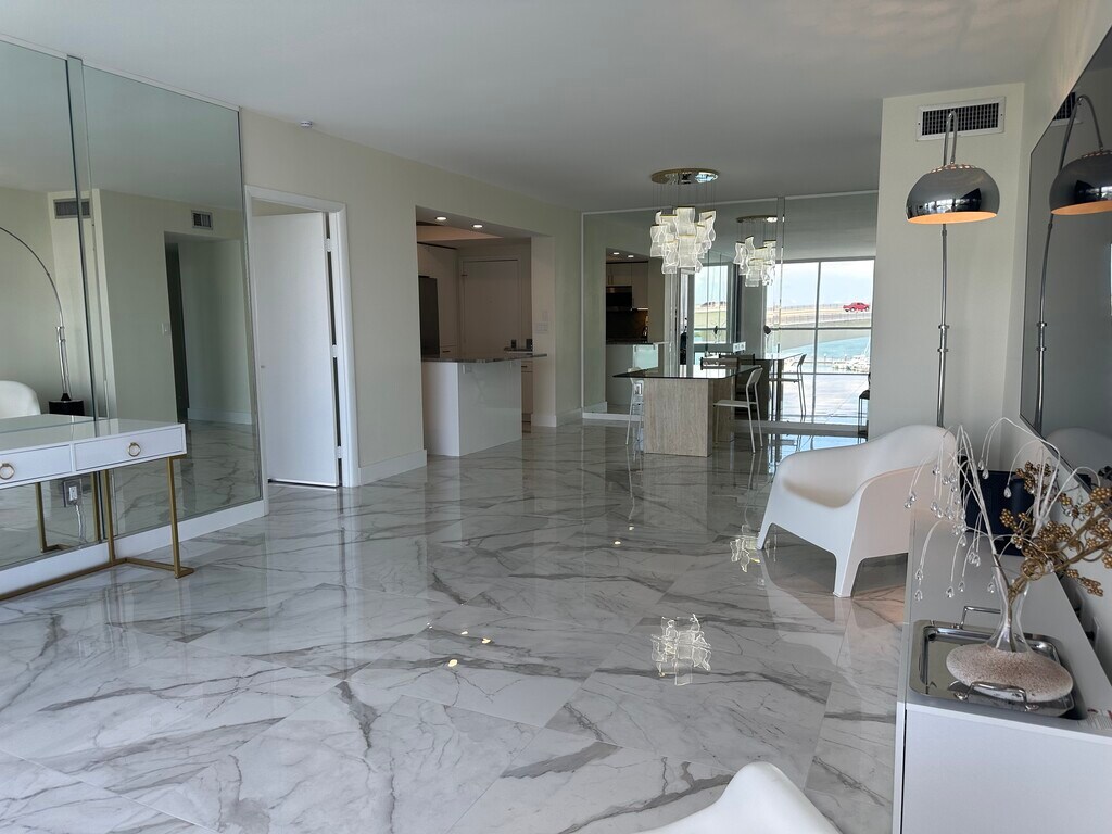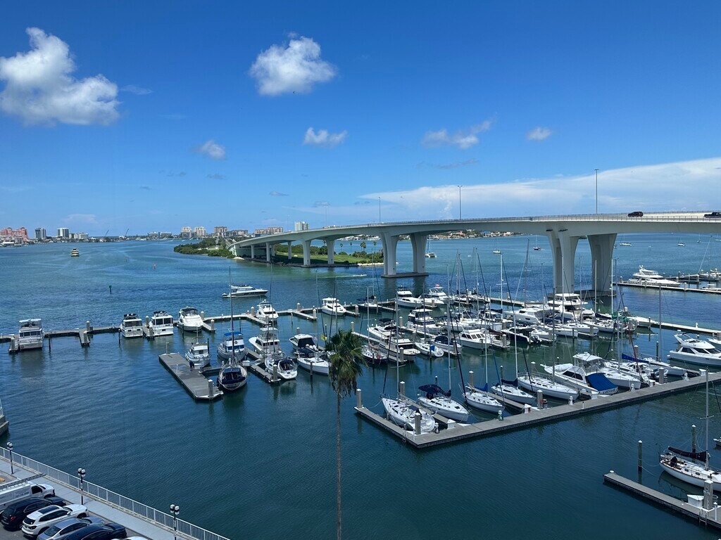 WATERFRONT PERFECTION!! COMPLETELY renovated 2 bed, 2 bath, 8th floor beauty with STUNNING VIEWS of the Intercoastal Waterway and Gulf of Mexico from every room! No expense was spared during renovation - this a virtually BRAND-NEW property, with 30” custom porcelain tiles throughout and FLOOR-TO-CEILING windows in every room! Enter from one of two private entrances and be amazed at the panoramic water views and natural light highlighted by 2 mirror accent walls! The brand-new chef’s kitchen features TOP-END STAINLESS STEEL appliances including a convection microwave, induction stove, huge intuitive fridge, cooking island and granite countertops. Need storage? How about over 25 SOLID WOOD CUSTOM BUILT CABINETS and drawers with incredible built-in features. A stunning overhead lighting fixture highlights a beautiful stone and glass dining table. Each of the spacious split bedrooms has their own PRIVATE BALCONY where you can enjoy a cool breeze with your morning coffee or a glass of wine and watch the sun set while dolphins frolicking below you. The primary bedroom is furnished with a brand-new king-size gel bed set, dresser, lamps, side table and custom drapes, and the ensuite bathroom features a huge walk-in closet with built-in shelving, dual sinks, an oversized medicine cabinet, extra storage and a spa-like walk in shower. Extra features are too numerous to list but include a NEW 75” WALL-MOUNTED SMART TV with XUMO streaming, a custom side table made from same granite found in the kitchen, a laundry room directly next door, a PRIVATE PARKING SPOT in the second floor parking garage not to mention the incredible amenities of 100 Pierce Condo - a huge heated pool and jacuzzi on a sprawling deck, private fishing pier and grilling space, billiards room, clubhouse, even a “board room” for your kayaks, paddle boards and other watersport toys. Located in a perfect spot, you are literally across the street from the beautiful new waterfront COACHMAN PARK, and just steps away from the BAYCARE SOUND concert venue as well as the shops and restaurants of historic downtown Clearwater. You are a short drive (or ferry ride) away from the sugar sand beaches and entertainment of Clearwater Beach, and close to major roadways that can take you to all the areas and attractions that Tampa Bay has to offer. This is indeed WATERFRONT PERFECTION, you absolutely must see this property to fully appreciate it!!!!