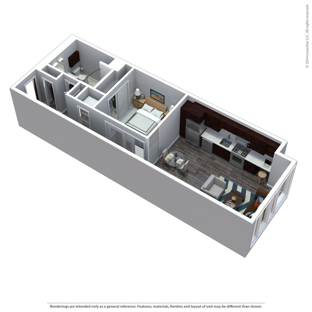 1 Dormitorio, 1 Baño, 641 pies²Disponible Oct 22Galería del Modelo