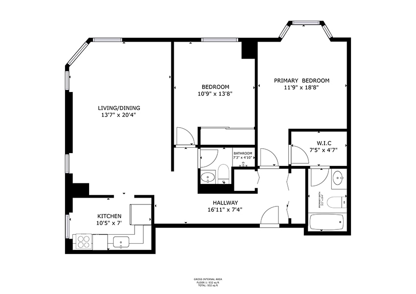 1 Dormitorio, 1 Baño, 612-635 pies²Disponible AhoraGalería del Modelo