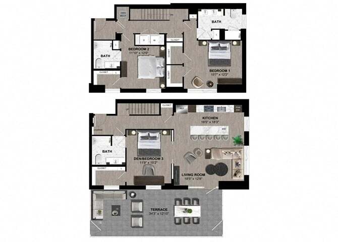 Modelo de apartamento: B1.18Desde $4,0642 Dormitorios, 2 Baños, 1268 sq ftDisponible Ahora![]()