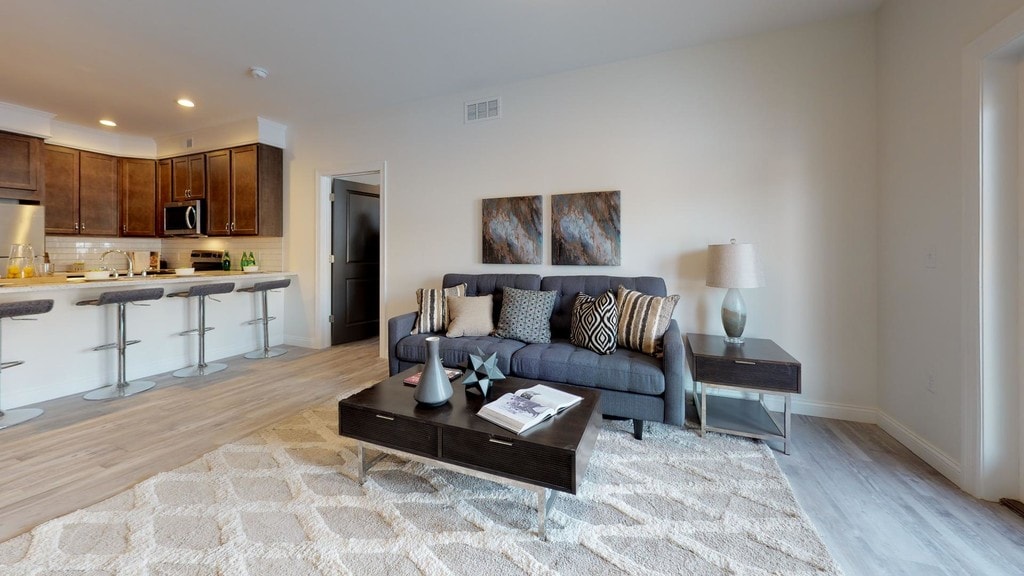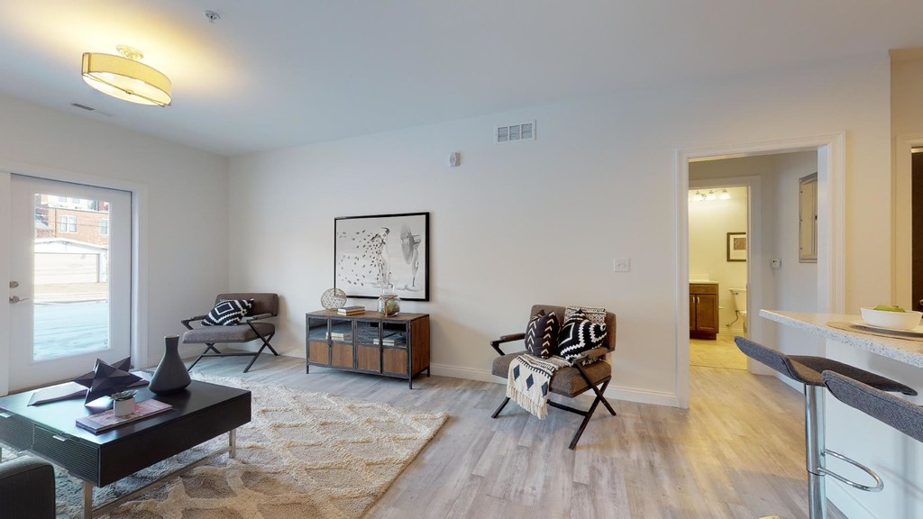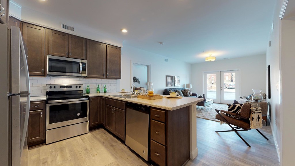 Los lujosos apartamentos incluyen acabados de calidad con modernos planos de planta abiertos. Ubicado en el corazón del histórico Soulard, 1001 Russell ofrece un nuevo nivel de comodidad residencial en el clásico vecindario de St. Louis. Cocina personalizada con electrodomésticos de acero inoxidable y elegantes encimeras, gabinetes amplios en la cocina y el baño le brindan mucho espacio de almacenaje. Cada apartamento viene con lavadora/secadora, salas de estar grandes, habitaciones de gran tamaño y vestidores. Algunos planos de planta cuentan con terrazas privadas, mientras que otros tienen hermosas ventanas francesas con vista a Russell. No hay disponibilidad hasta finales de primavera/verano.