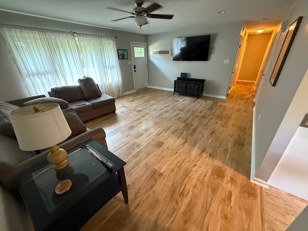 Welcome to 1005 Kentucky Street in Valparaiso, offered as a fully furnished mid-term rental with flexible 1–12 month leases. Perfect for working professionals in need of a temporary home, this 3-bedroom, 2-bathroom home offers 1,300 sq. ft. of living space with thoughtful updates throughout. The main level features brand-new flooring, a bright living room with ample natural light, and a kitchen equipped with essential appliances. Each bedroom is outfitted with queen- and full-sized beds for comfort, while the guest bathroom includes tub/shower combinations and primary bedroom features a 3/4 bath en suite. The home also includes a washer and dryer for added convenience. The basement provides laundry access and storage, and the spacious 3-car detached garage with loft offers plenty of room for parking, storage, or flexible use. High-speed internet and utilities (up to $250/month) are included in the rent, along with lawn care for easy maintenance. Ideally located near the old fairgrounds, the Boys & Girls Club, TJ Middle School, and Valplayso Park, the home is also just minutes from downtown and within walking distance to Town & Country grocery store, CVS, and Walgreens. Rent is $3,050/month.
