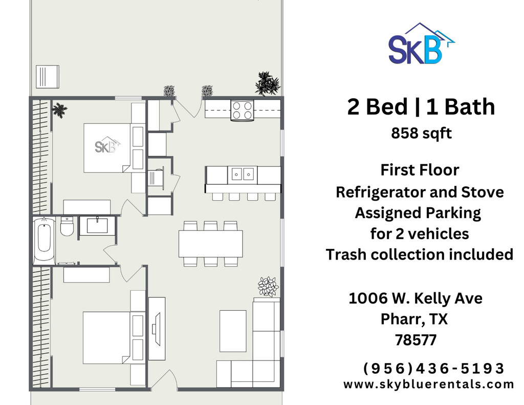 2 Dormitorios, 1 Baño, 1000 pies²Galería del Modelo