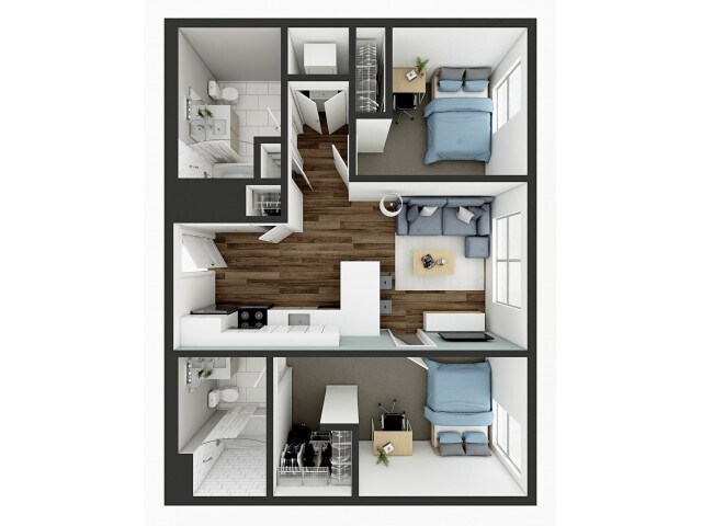 Modelo de apartamento: B3$1,1752 Dormitorios, 2 Baños, 753 sq ftDisponible Ahora![]()