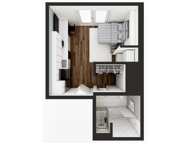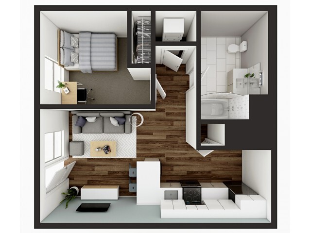 Modelo de apartamento: M1 Murphy$1,180Estudio, 1 Baño, 319 sq ftDisponible August 19, 2026![]()