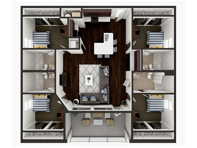 En The Academy Campustown tenemos cuatro increíbles propiedades, 1008 S. FOURTH, 307 E.Daniel, 908 S. PRIMERA, y 501 S. SIXTH. En ACT, ofrecemos todo, desde estudios hasta casas adosadas de 5 habitaciones. Tenemos exactamente lo que buscas y más. Nuestros apartamentos ofrecen electrodomésticos de acero inoxidable, televisores de alta definición, muebles de diseño exclusivo, y azulejos, showers--the acabados hablan por sí solos. Estas son las propiedades más lujosas en el campus.