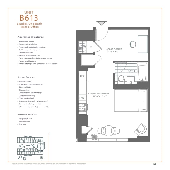 Unidad: B-609 - Plano Alcove Studio / 1 Bathroom