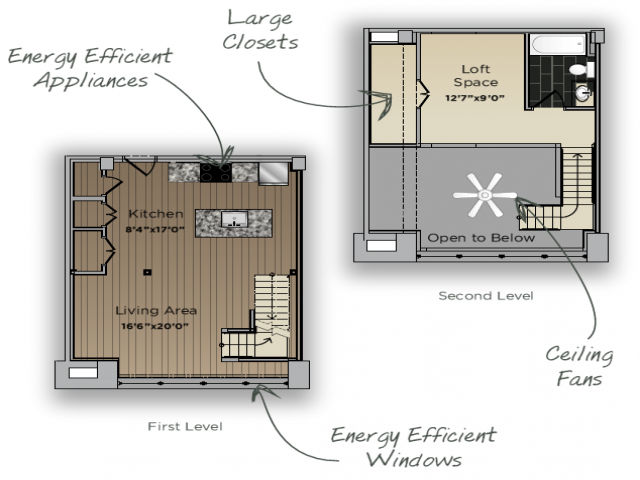 Fecha Disponibilidad Unidad Pies² No Disponible 1 Bed Loft w/ Spiral 538 pies² Características y Comodidades de Modelo