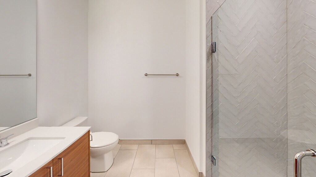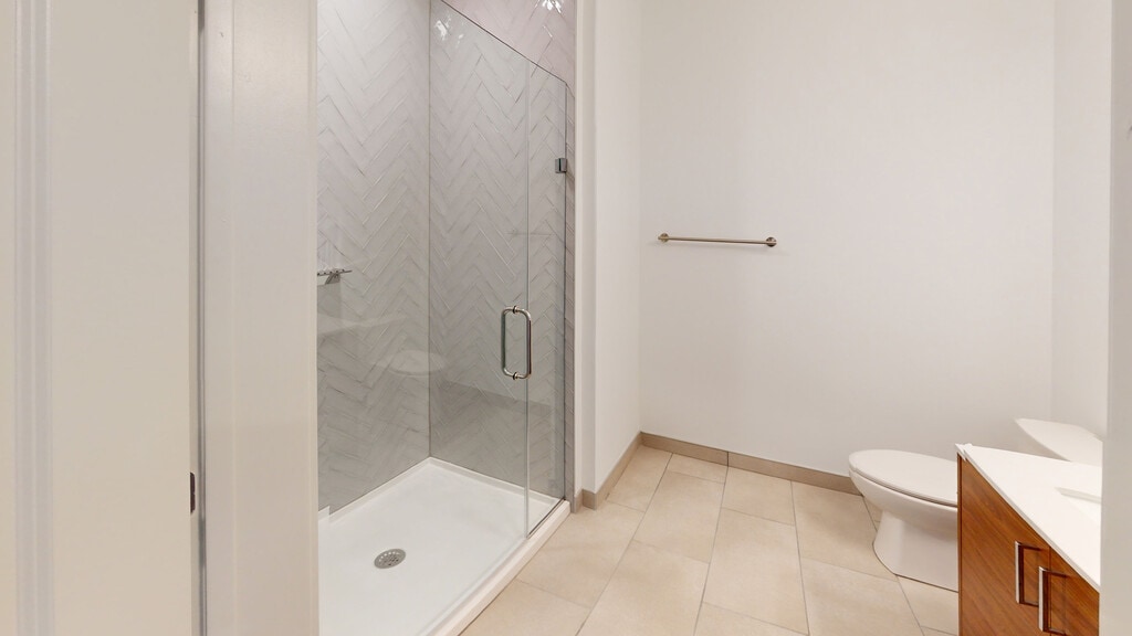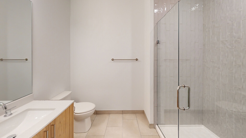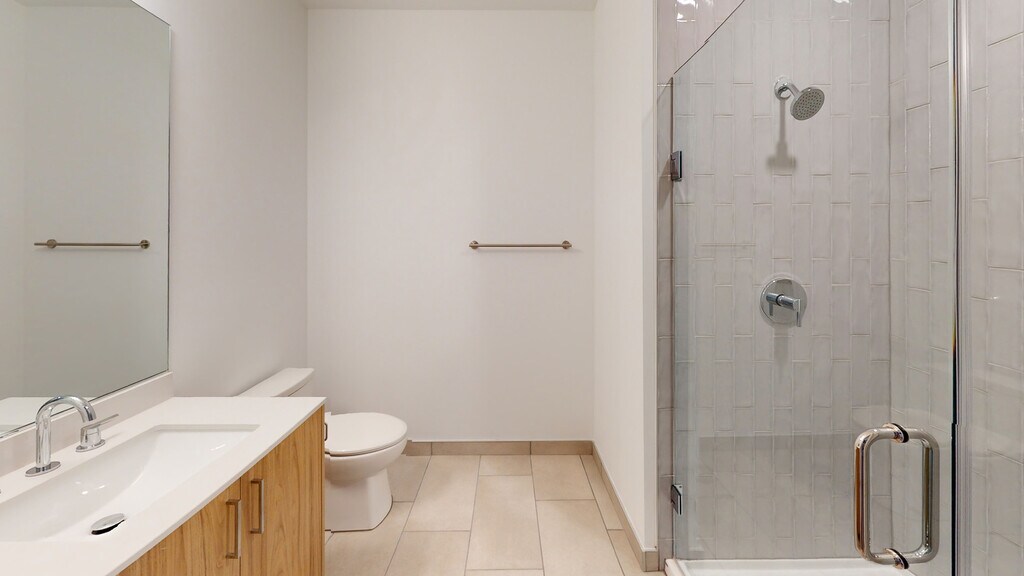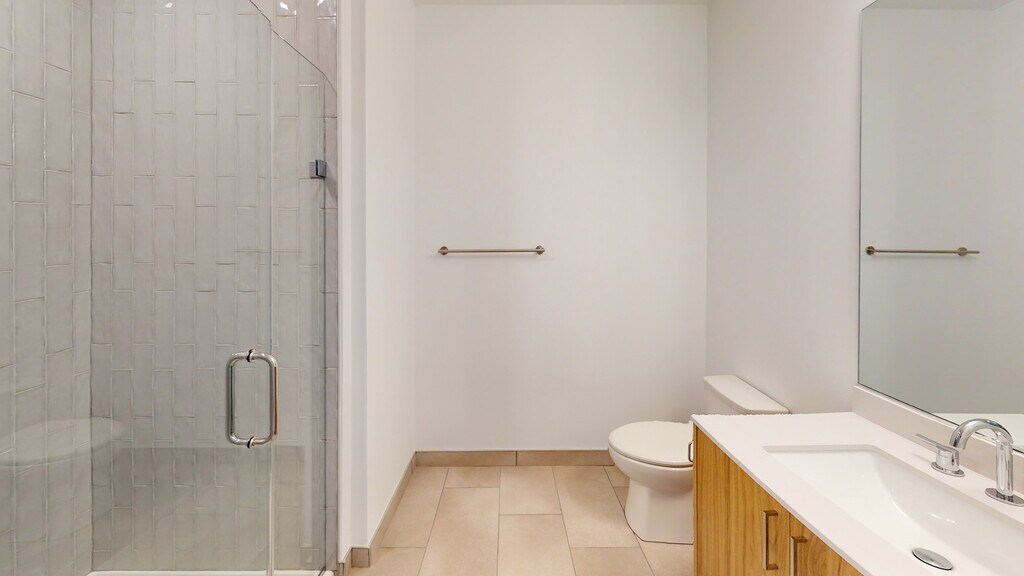- Ducha con mampara de vidrio sin marco