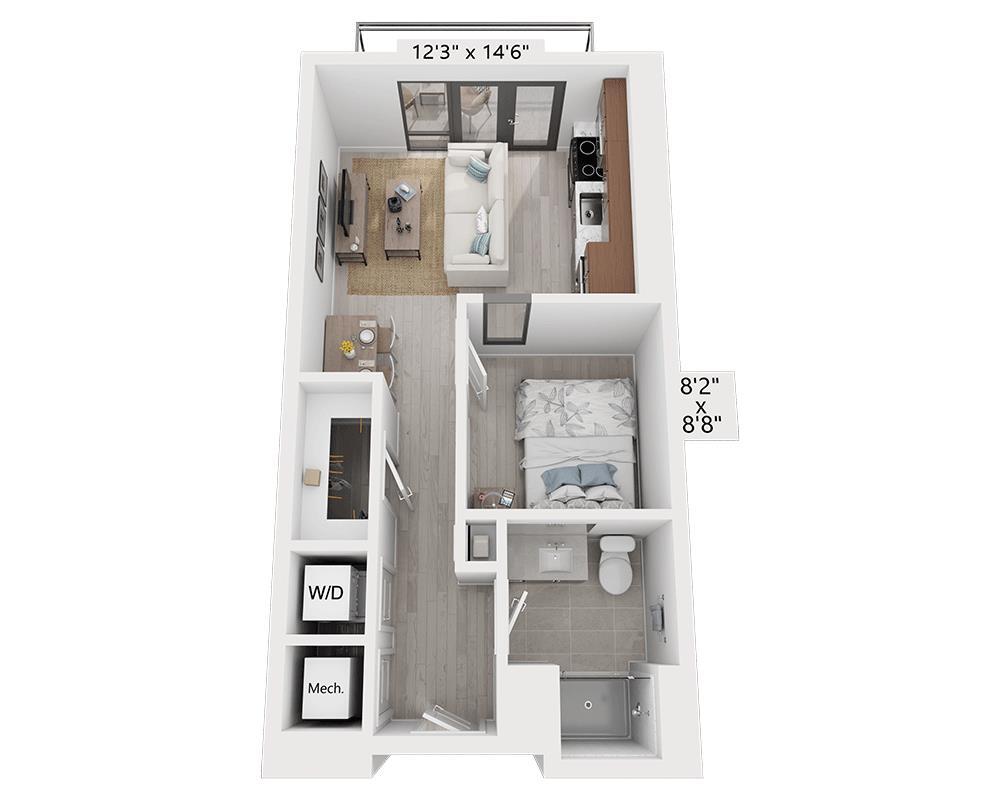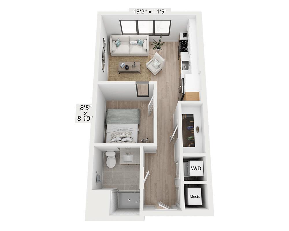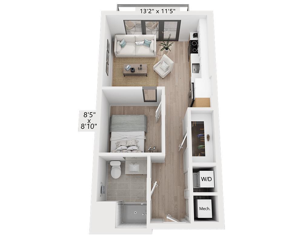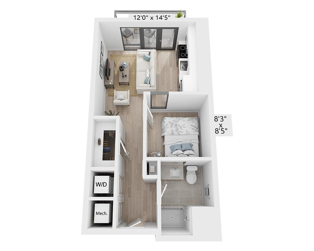 Estudio, 1 Baño, 464 pies²Precio Mensual TotalDisponible Mar 7Galería del Modelo