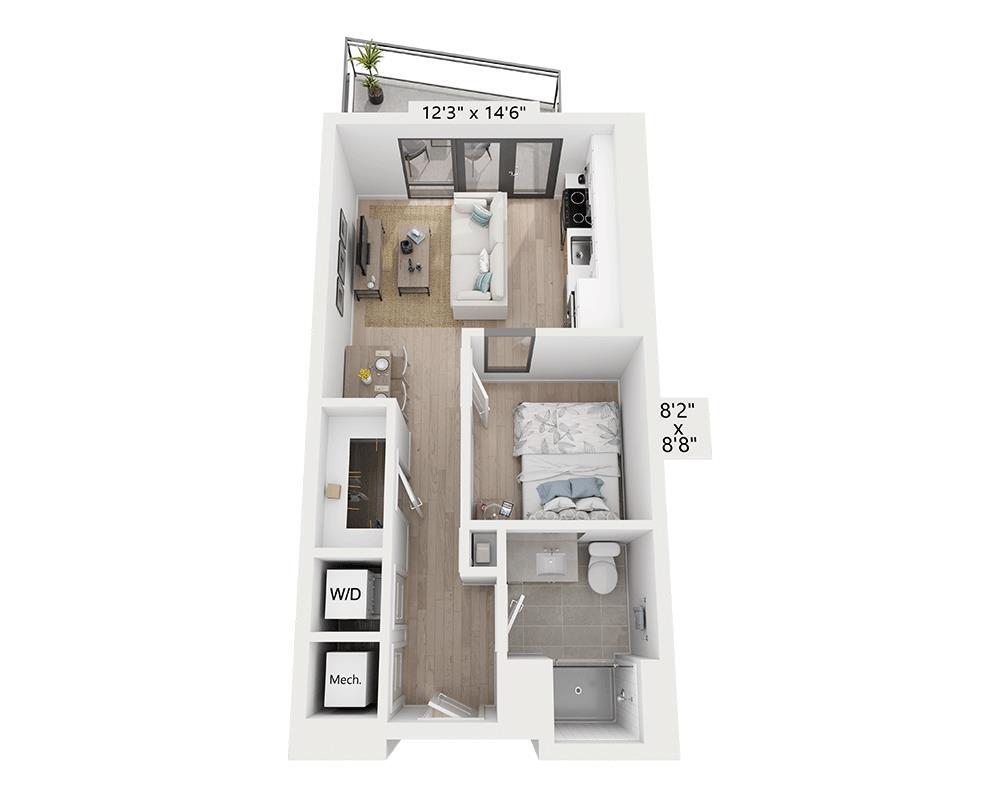 1 Dormitorio, 1 Baño, 501 pies²Disponible AhoraEl más baratoEsta opción tiene los precios más bajos para este modeloGalería del Modelo