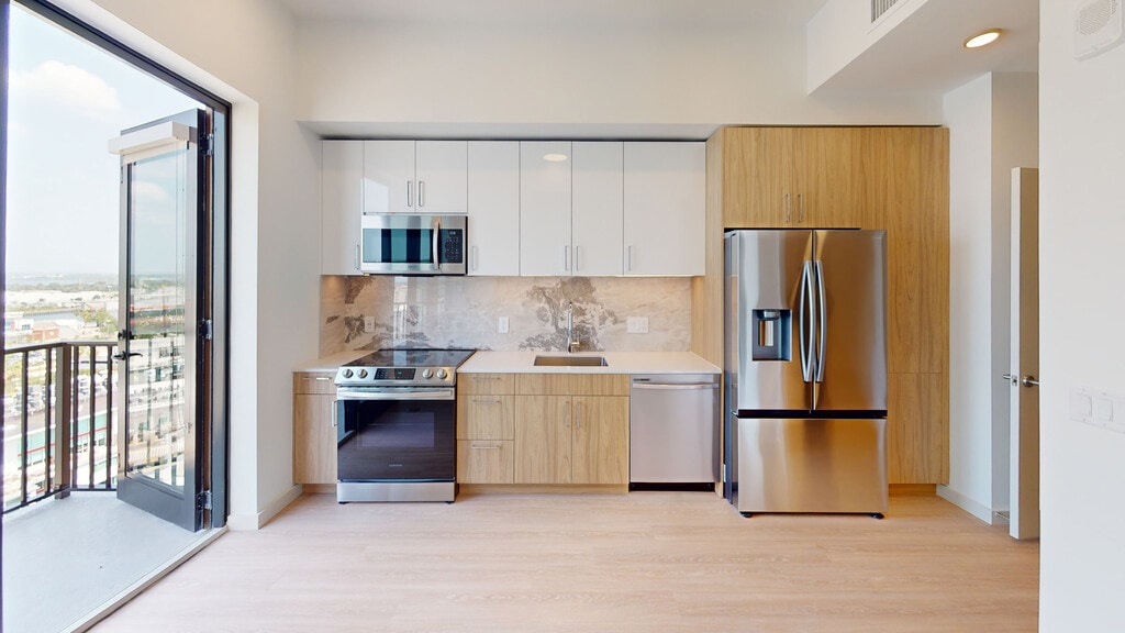 101 N. Meridian ofrece impresionantes casas adosadas, estudios, apartamentos de uno, dos y tres dormitorios para alquilar en el animado Channelside District de Tampa. Construidas para inspirar, cada apartamento con hogar inteligente cuenta con gabinetes italianos de primera calidad, encimeras de cuarzo, pisos de madera y electrodomésticos de acero inoxidable. Encuentre modernos servicios comunitarios en cada rincón, como un gimnasio de vanguardia, espacio para trabajar en conjunto, terraza en el piso 15, terraza con piscina al aire libre y una tranquila terraza. Justo a la salida, explore Sparkman Wharf, vea un partido de hockey en Amalie Arena o camine por Tampa Riverwalk, todo a pasos de distancia de casa. Vive la vida en el centro de todo en 101 N. Meridian.