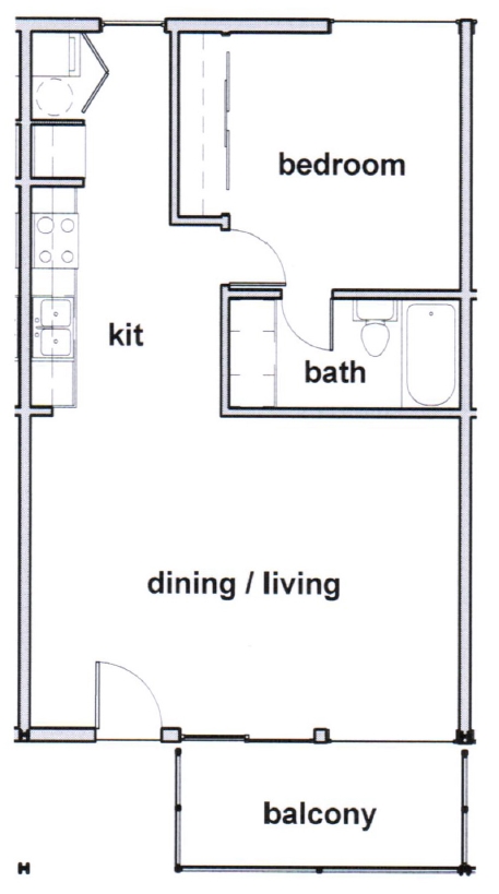 Modelo de apartamento: A11 Dormitorio, 1 Baño, 650 sq ftNo Disponible![]()