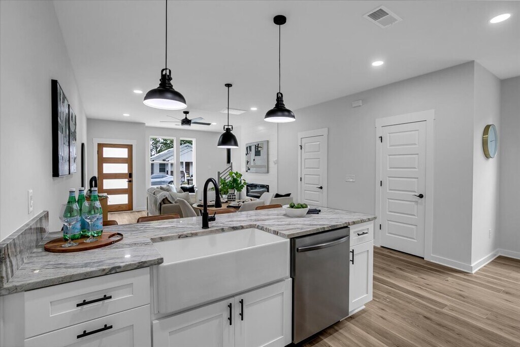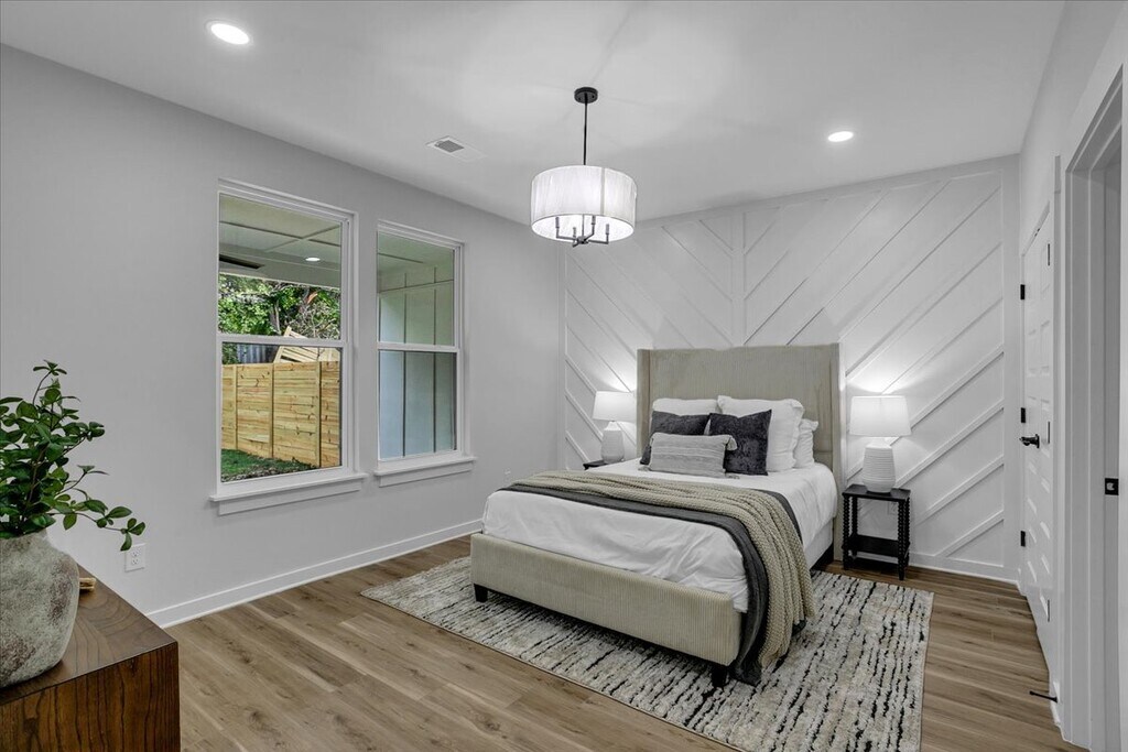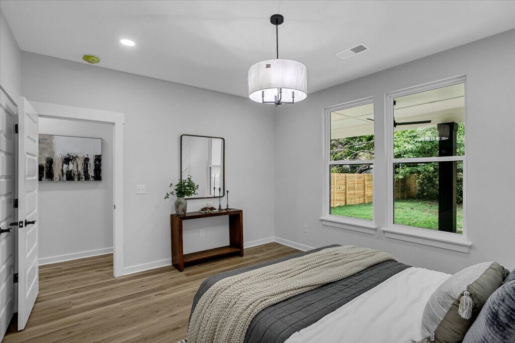 Brand new, fenced in yard with outdoor covered seating. Master bedroom on the first floor with attached bathroom. Other 2 bedroom are upstairs.