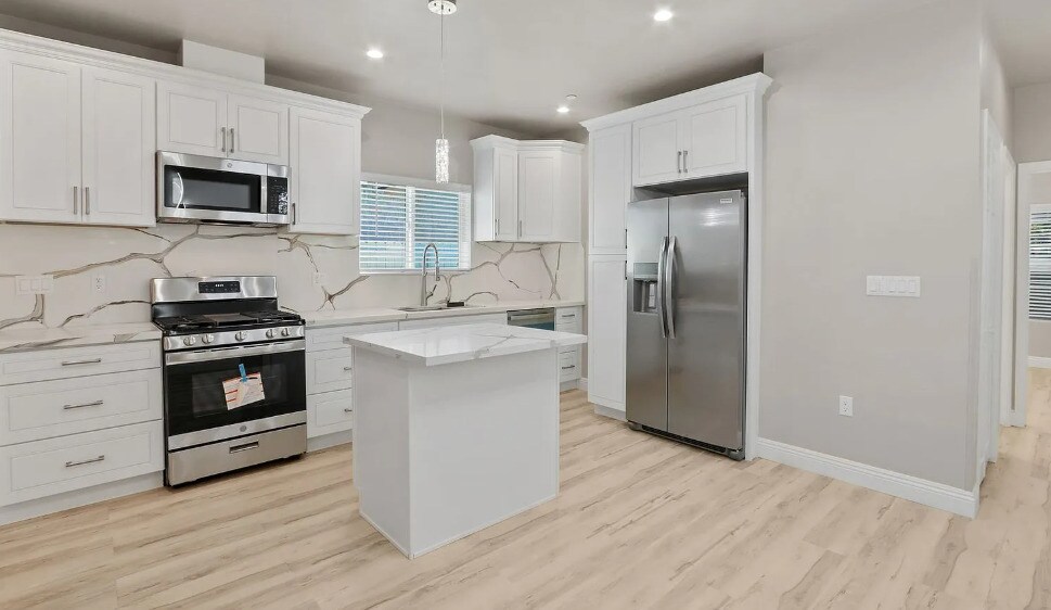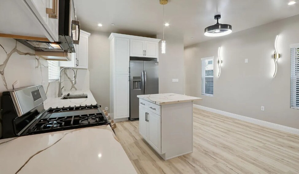 The spacious kitchen is designed for both style and functionality, complete with new cabinets, granite countertops, a kitchen island bar, and stainless steel appliances including a stove, refrigerator, microwave, dishwasher, and garbage disposal. Enjoy year-round comfort with a mini-split A/C and heating system, along with the convenience of an in-unit washer and dryer. Additional features include mirrored closet doors, window blinds, and assigned 1-car parking. Small to medium pets are welcome. This modern and well-appointed ADU is a perfect place to call home. This home is equipped with solar panels, providing energy efficiency and helping reduce monthly utility costs.