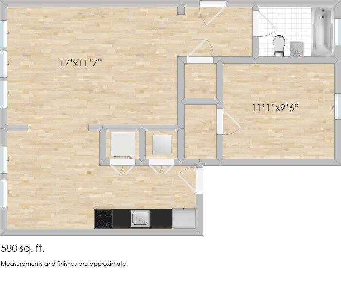 Estudio, 1 Baño, 600 pies²Galería del Modelo