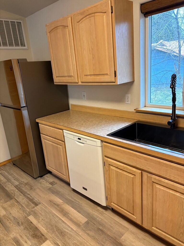 open Kitchen,Dining and Livingroom area plus large bdrms and baths. large attached garage with adjoining extra storage area. Walking distance to Lake and downtown area. Quiet area off busy roads and long term renters who respect each others quiet enjoyment.