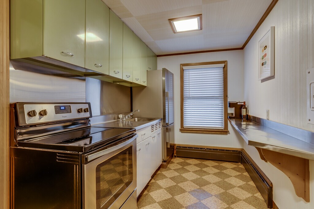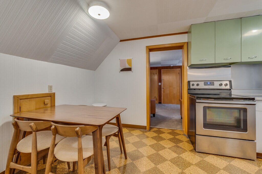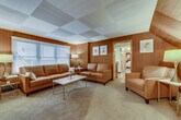 Mid-century modern apartment has been updated to complement the unique design of this historic property. Located in South Bend's East Bank Village neighborhood, the house is 1.4 mile south of Notre Dame (4 min. drive or 20 minute walk). Howard Park, the Riverfront Trail, Farmers Market, many restaurants, bars, shops, parks, spas, and other amenities all within ten minutes walk. Private entrance to this one-bedroom 2nd story apartment. There is an office tenant on the first floor.