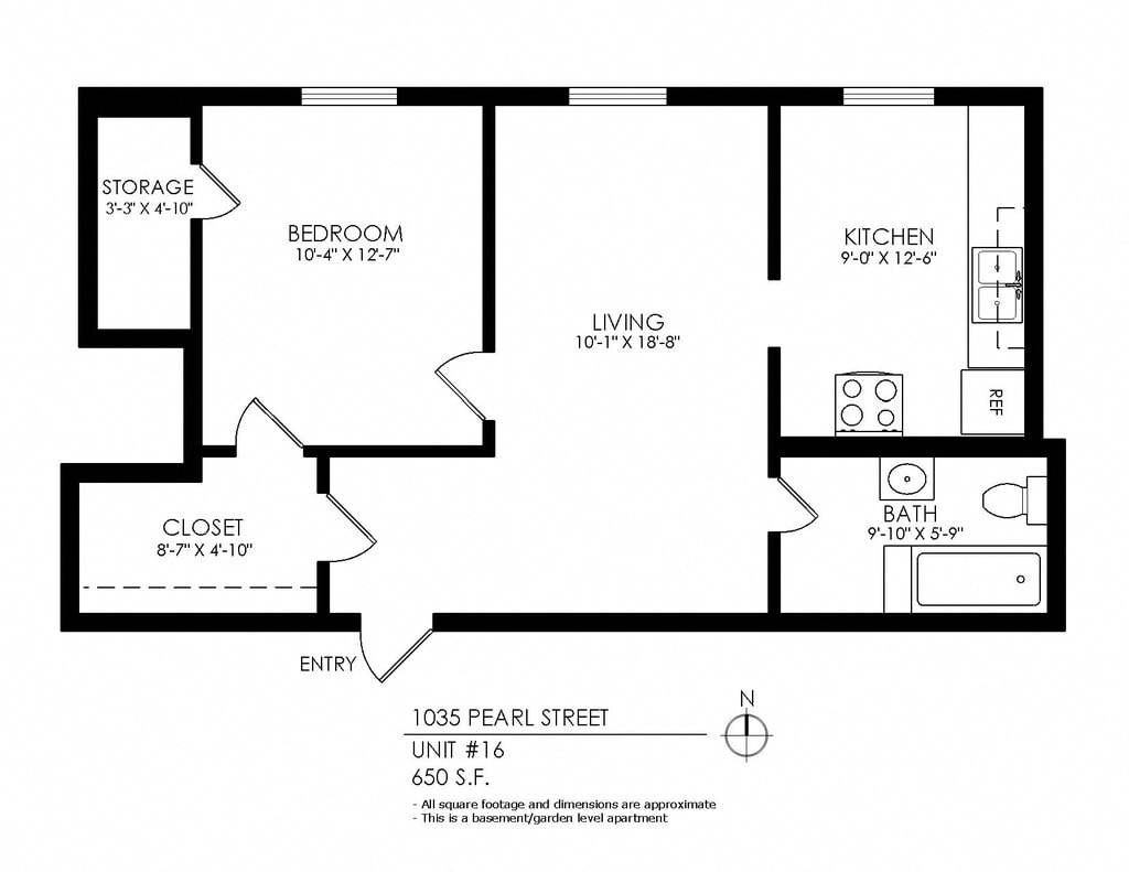 1 Bedroom, 1 Bath (Garden Level) - Plano 4 Unidad de apartamento: 16Modelo de apartamento: 1 Bedroom, 1 Bath (Garden Level)1 Dormitorio, 1 Baño, 650 sq ftDisponible Ahora![]()