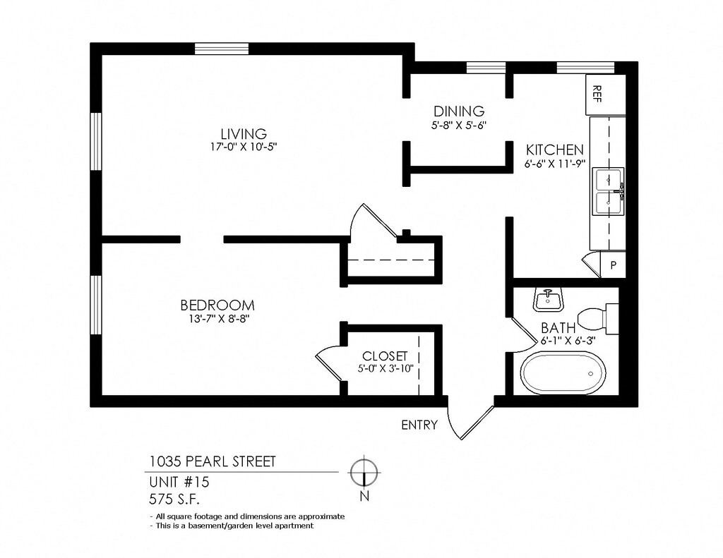 1 Bedroom, 1 Bath (Garden Level) - Plano 1 ![]()
