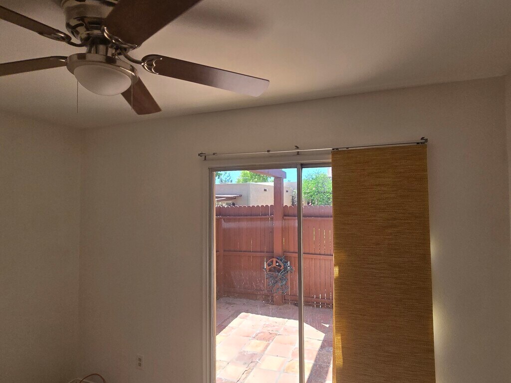 Tired of Apartment Living? Welcome Home to your single level lush townhome community. Located in the back of the community with 2 assigned covered parking spots this 3bd/2ba townhome boasts 15 foot wood beam ceilings in open living/dining room with unique atrium. Split floor plan with Master seperated from other 2 bedrooms and guest bath. 2 patios (1 off of Master, one off of front entrance and bedroom #1) and a storage closet will ensure you do not feel cramped in this spacious home. New in 2025- Stove, Refridgerator, Showers, Toilet, Ceiling Fans, Closet Doors. Freshly painted, floors professionally cleaned; this home has been lovingly taken care of! Community is in the exciting Central coordidor close to Restaurants and Bars located off of Northern Ave between 7th St and 12th Street. Unit located at the back of the community so VERY quiet.