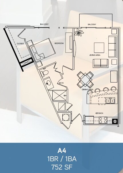 1 Dormitorio, 1 Baño, 750 pies²Disponible AhoraGalería del Modelo