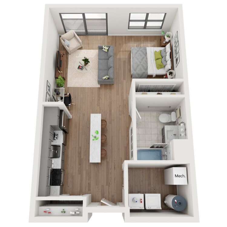 Estudio, 1 Baño, 617 pies²Galería del Modelo
