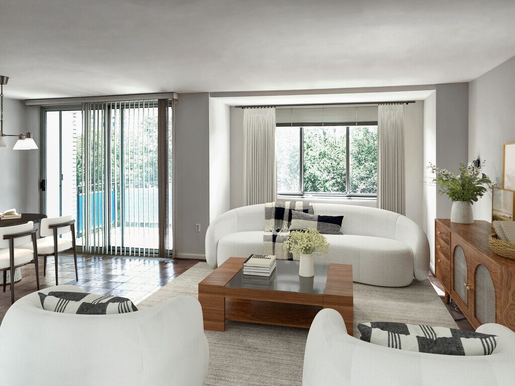 This 1-bedroom, 1-bathroom apartment offers 800 square feet of living space. The unit features an open living room that provides ample natural light and connects seamlessly to the kitchen, which has been remodeled for convenience. The bedroom is spacious, accommodating a queen-sized bed. Amenities include a pool, tennis courts, fitness center, and laundry facilities on-site. The building is smoke-free and features an elevator for easy access to all floors. This property is ideal for those seeking a comfortable living environment with essential amenities. Just steps to Metro, minutes to NIH, Naval Medical and major routes. All utilities are included