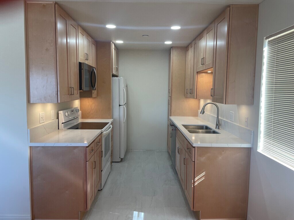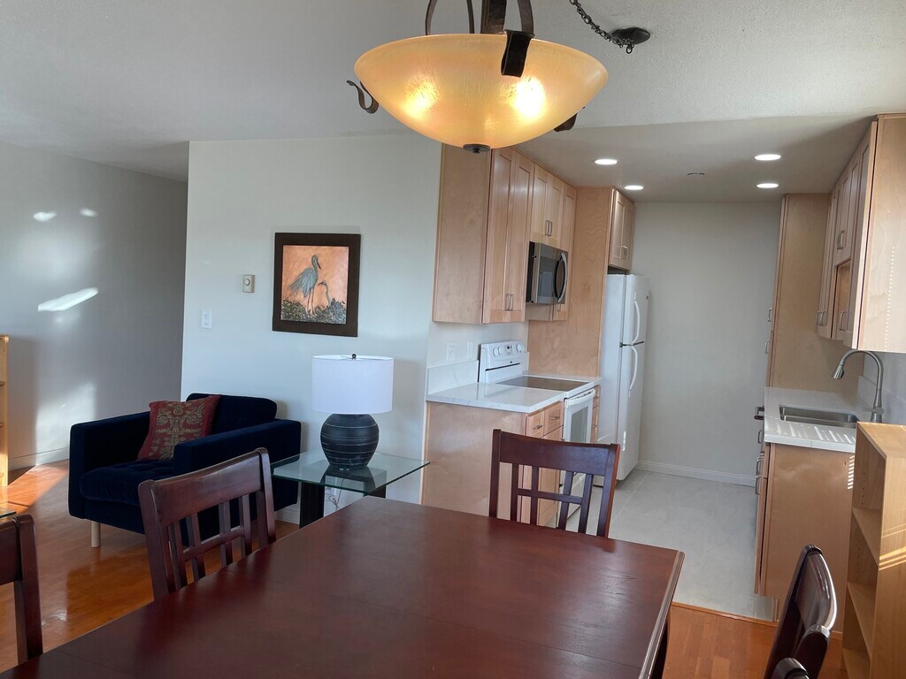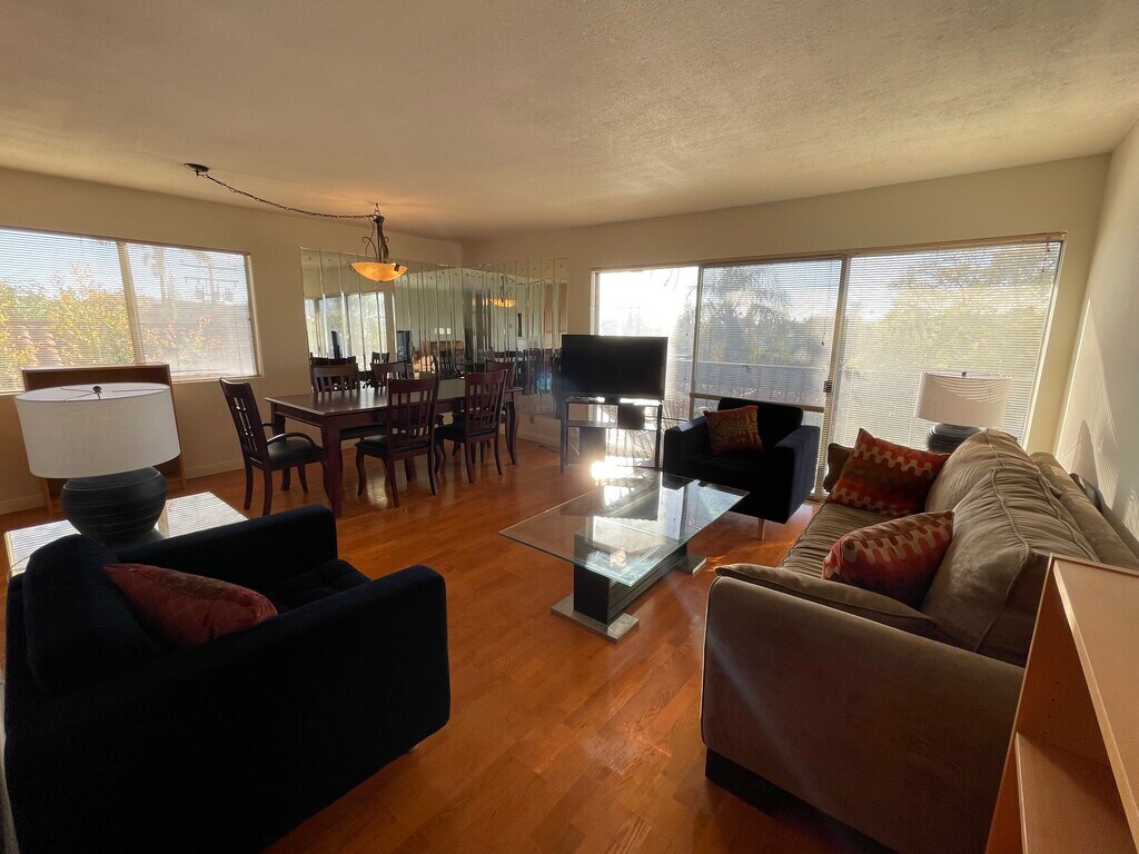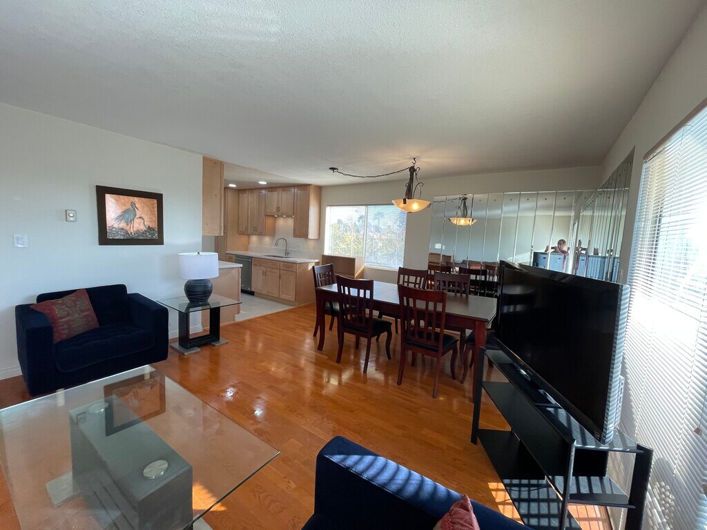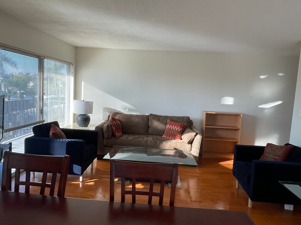 FULLY FURNISHED CONDOMINIUM FOR RENT Luxury corner unit condominium close to the beach in a quiet residential area with plenty of parks nearby. This fully furnished condominium has just been completely painted and remodeled. The upgraded spacious living room is bright with beautiful and unobstructed view of the surrounding areas. The living room includes a comfortable couch, two armchairs, a coffee table and two side tables, and a TV, so you do not have to spend for any new furnishing. The living room also has a big balcony with space for seating and barbeque. The dining room includes a large dining table for six and easy access to the kitchen to conveniently serve your guests. Newly upgraded kitchen includes new flooring, brand new cabinets with plenty of storage space, new Frigidaire dishwasher, newly installed microwave, stove and full-size fridge. LED ceiling lighting and undercabinet LED lights make it a pleasant bright and comfortable spot to cook your meals. This home includes one big bedroom with a large closet with lots of space to hang clothes and plenty of shelf space. The mirrored closet doors give it an even bigger and more spacious feeling. The bedroom includes a queen size bed, two large side-by-side drawers, two bed stands and lights. The unit also includes a full-sized upgraded bathroom with brand new flooring and tiles, bathtub doors, and lighting. A gated covered parking space ensures your vehicle is secure and accessible. A dedicated storage space in the garage is a great place to store your seasonal items. The residence also includes a gated pool and spa, a shared washer and dryer facility on each floor, and a nicely decorated entrance lobby. Water and garbage disposal is included in the rent. This residence is conveniently located only 1.5 miles from Belmont Shore restaurants, coffee shops and stores. It is only 2 miles from Cal State Long Beach and less than 5 miles to downtown Long Beach. Please call to schedule a tour of the property.