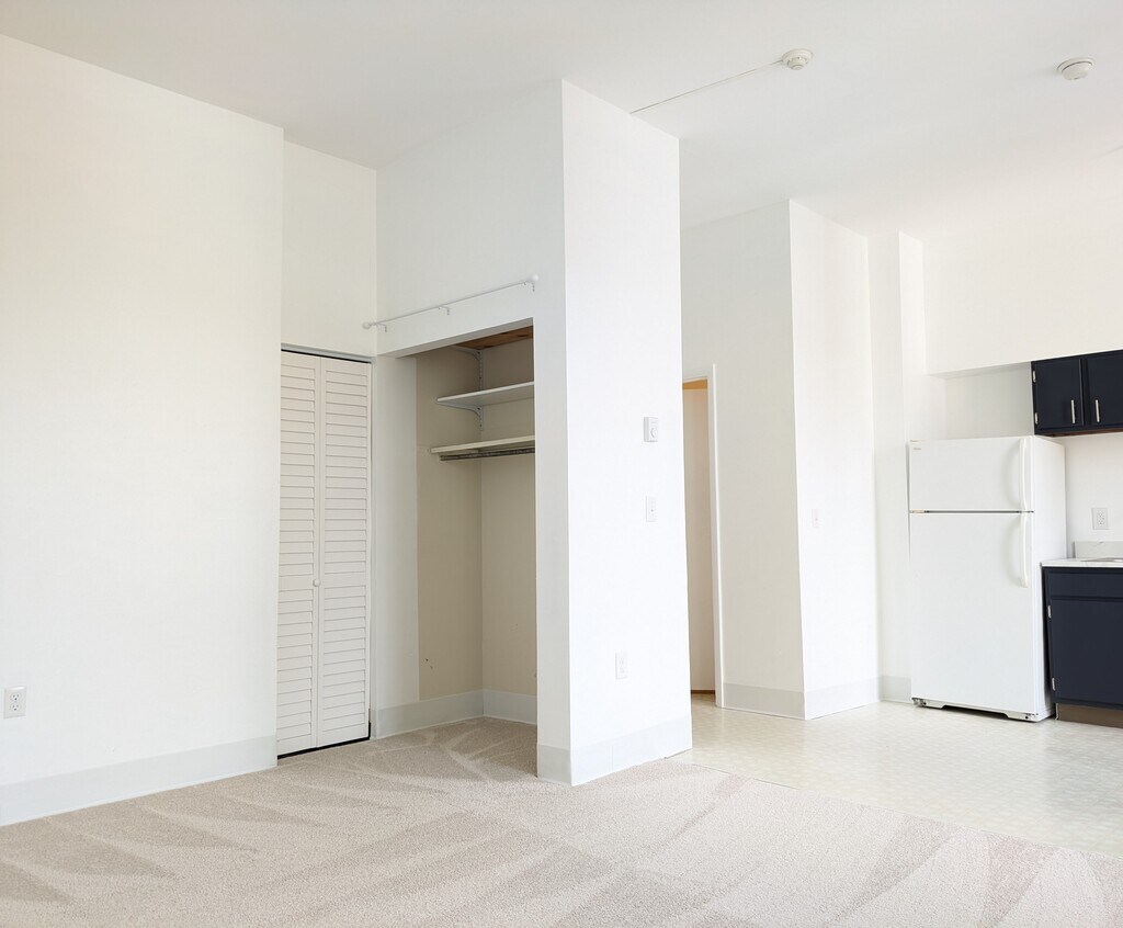 Spacious, high ceilings, unfurnished 1 bedroom in downtown location. On a bus route, minutes to everything. Water/sewer included. Utilities (all electric) not included. Trash and recycling on site. Metered or garage parking available.