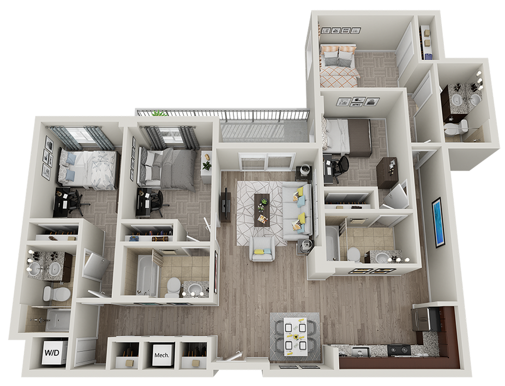 4 Dormitorios, 4 Baños, 341 pies²El más grandeEsta opción tiene las unidades más grandes para este modeloGalería del Modelo